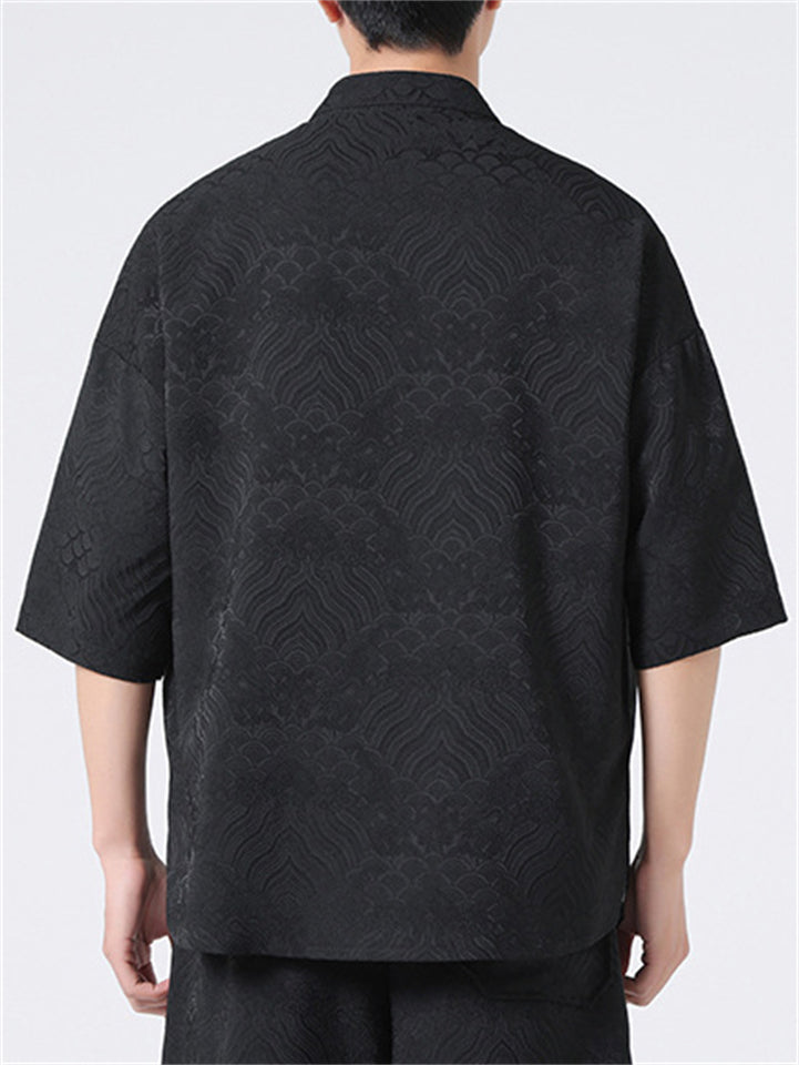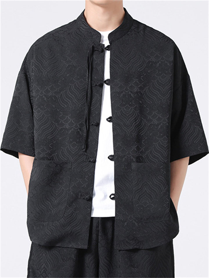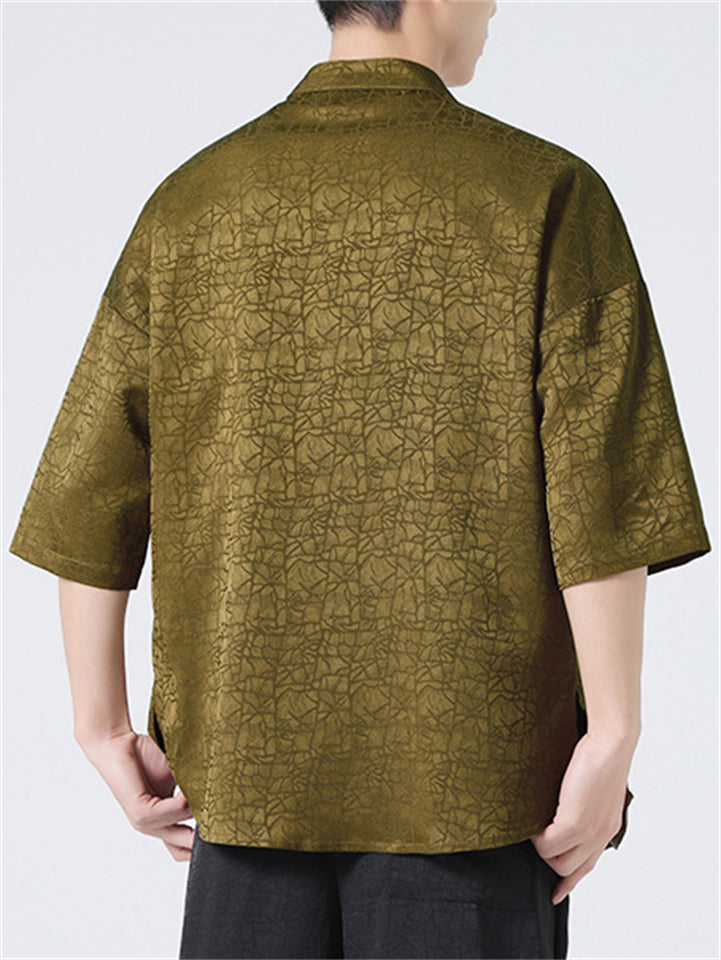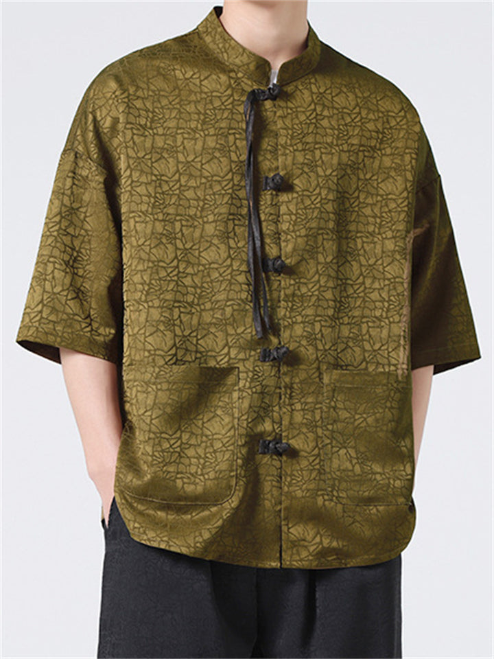 Men's Vintage Summer Solid Color 3/4 Sleeve Stand Collar Shirts