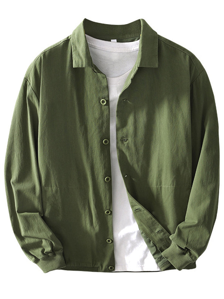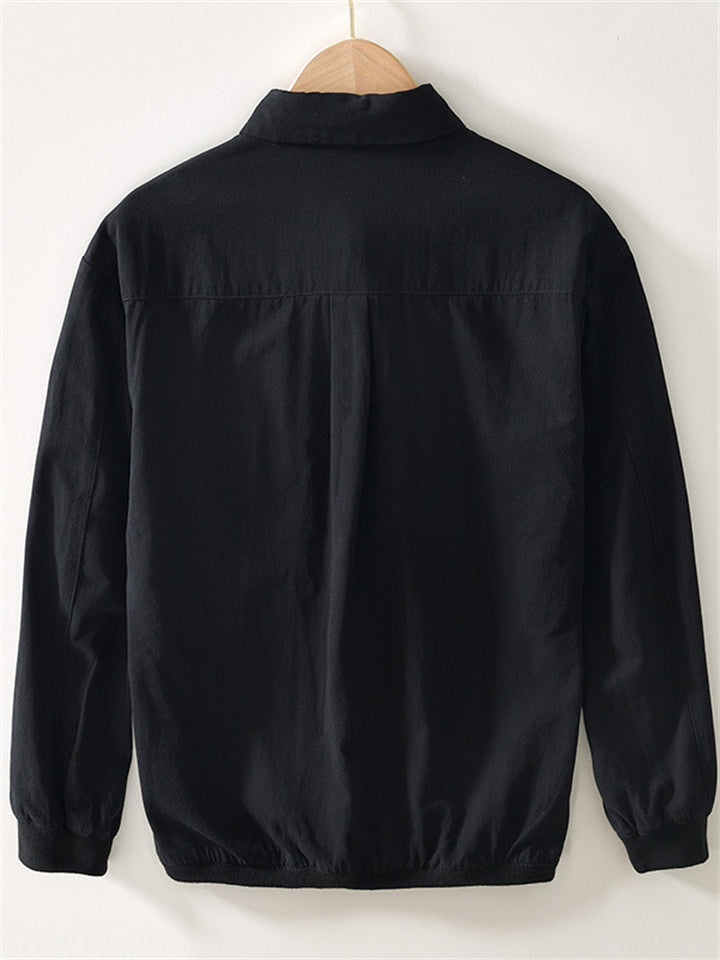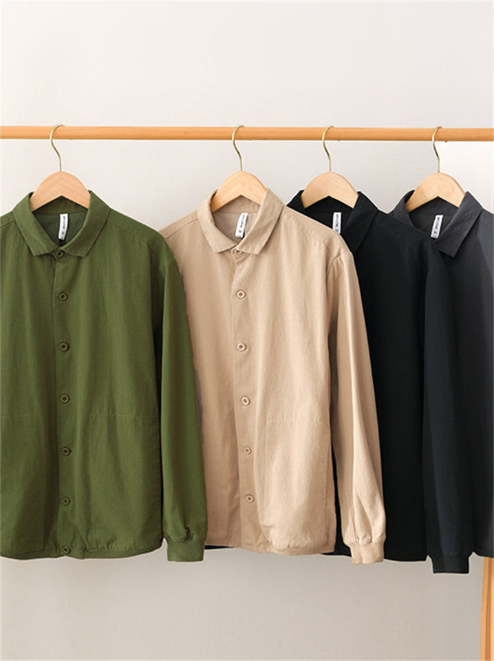 Retro Men's Cotton Solid Color Casual Pockets Long Sleeve Shirts