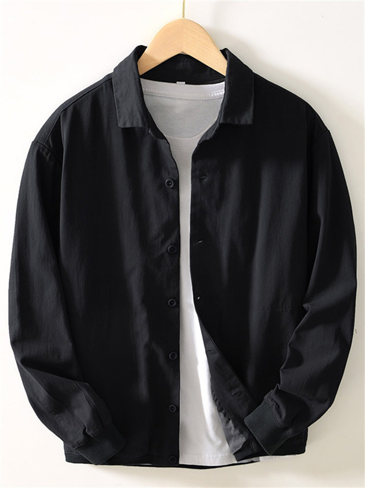 Vintage Long Sleeve Button Up Linen Shirt for Men