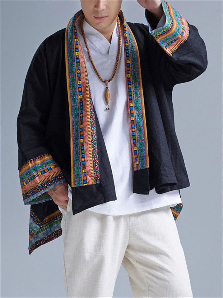 Retro Men's Ramie Ethnic Style Cardigan Top