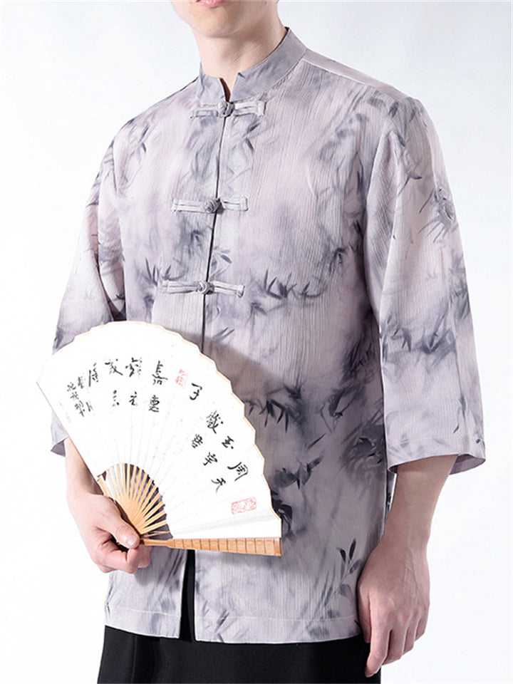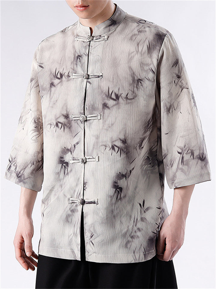 Men's Autumn Vintage Chinese Style Printed Frog Button Tangsuit Shirts