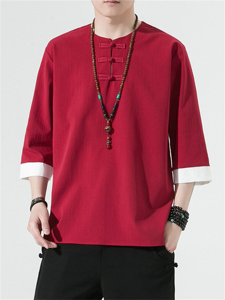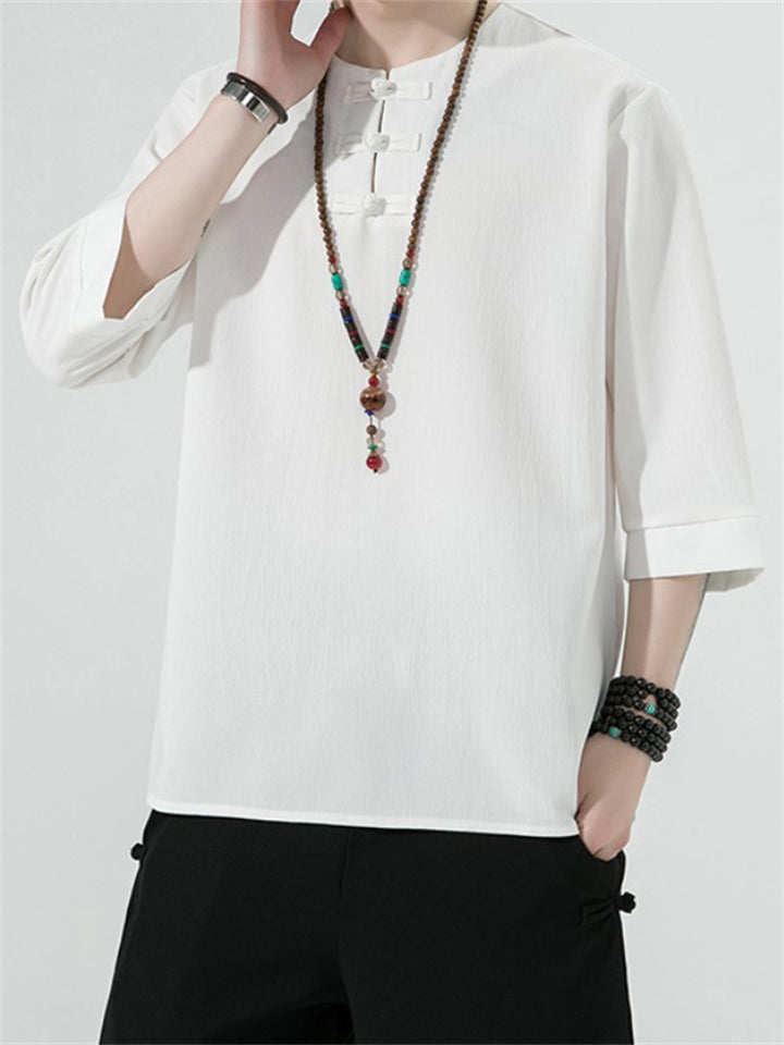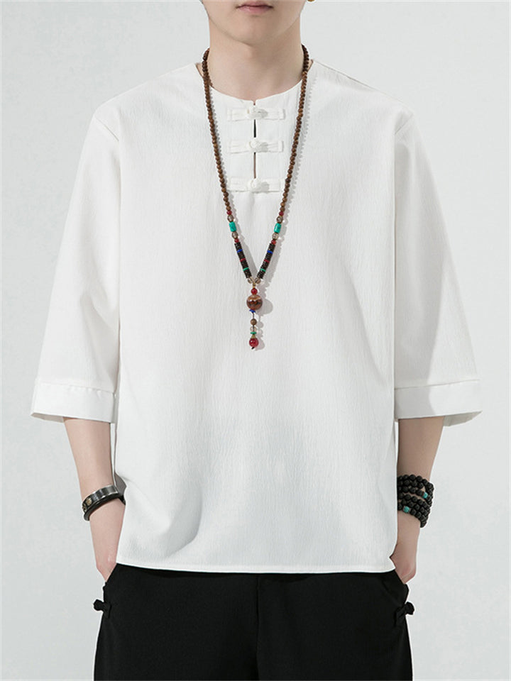 Men's Vintage Summer Solid Color 3/4 Sleeve Stand Collar Shirts