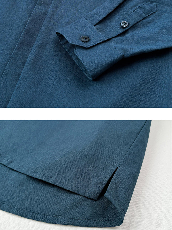 Vintage Long Sleeve Button Up Linen Shirt for Men