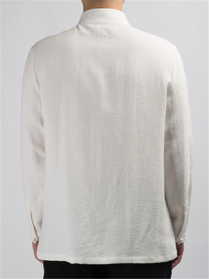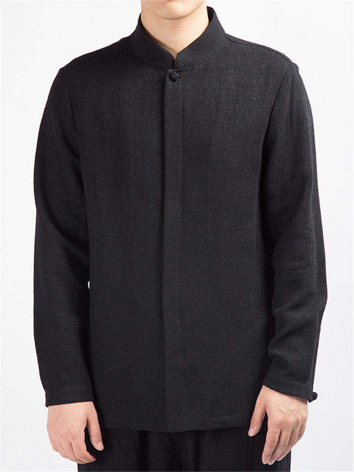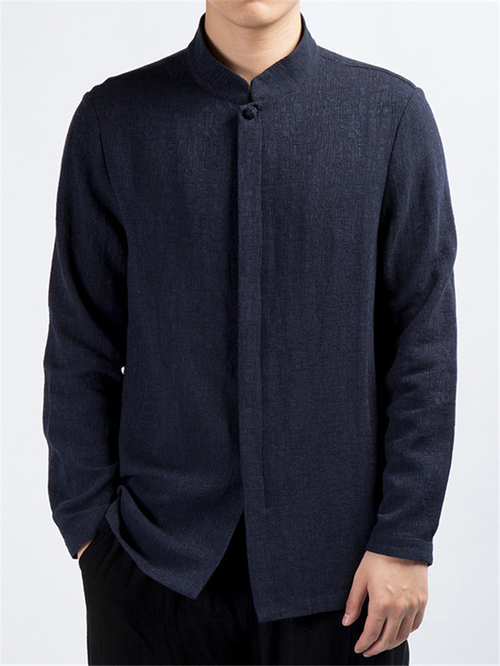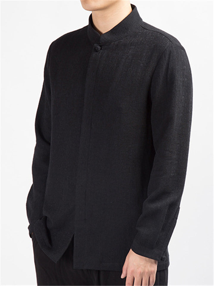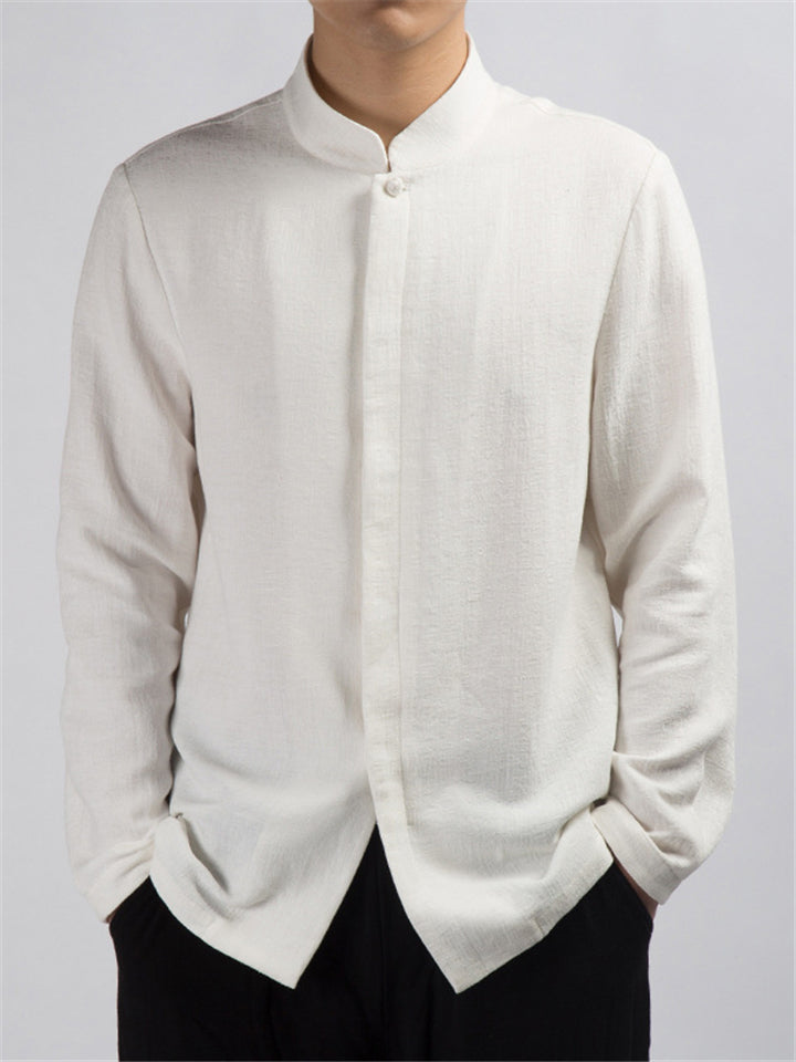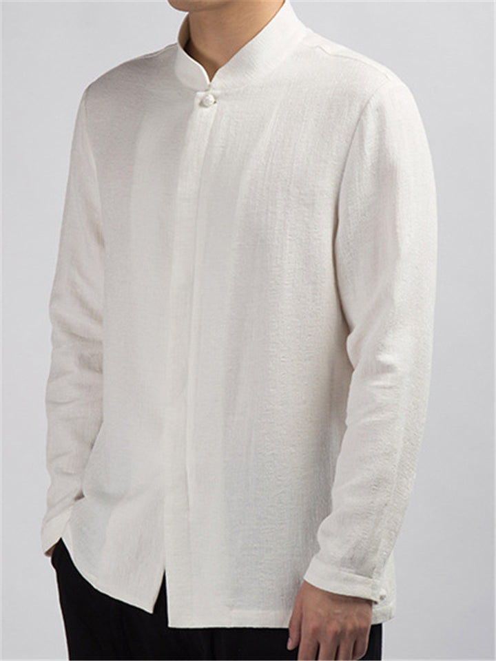 Men's Simple Chinese Style Ramine Stand Collar Tangsuit Shirts