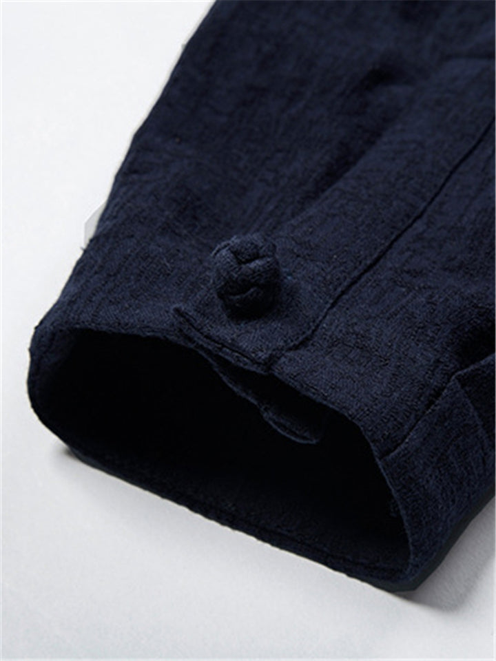 Vintage Long Sleeve Button Up Linen Shirt for Men