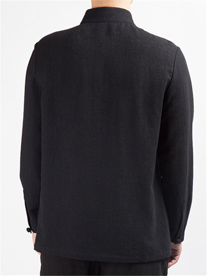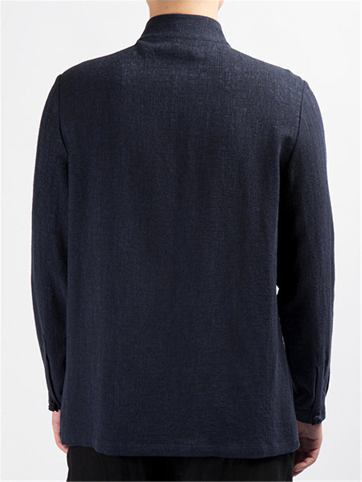 Men's Autumn Vintage Jacquard Stand Collar Long Sleeve Shirts