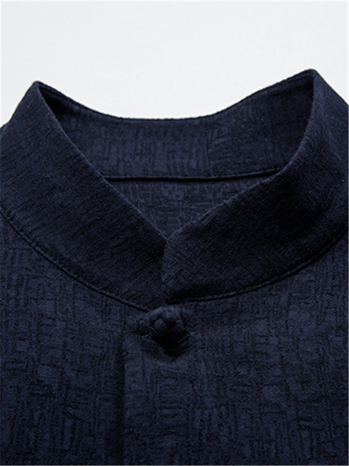 Men's Vintage Summer Solid Color 3/4 Sleeve Stand Collar Shirts