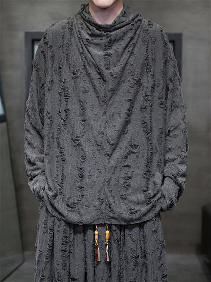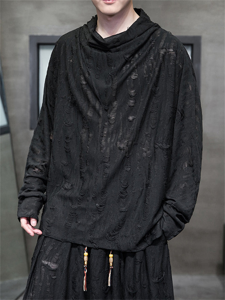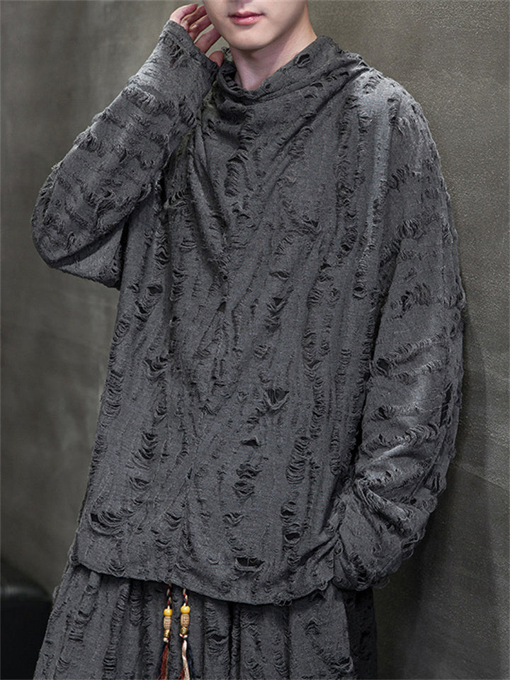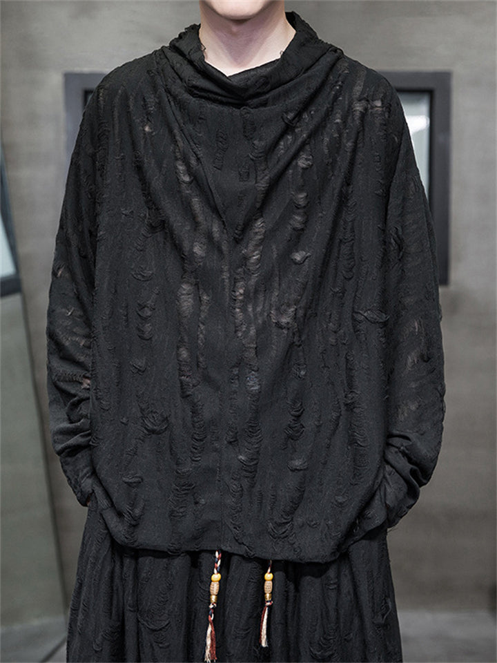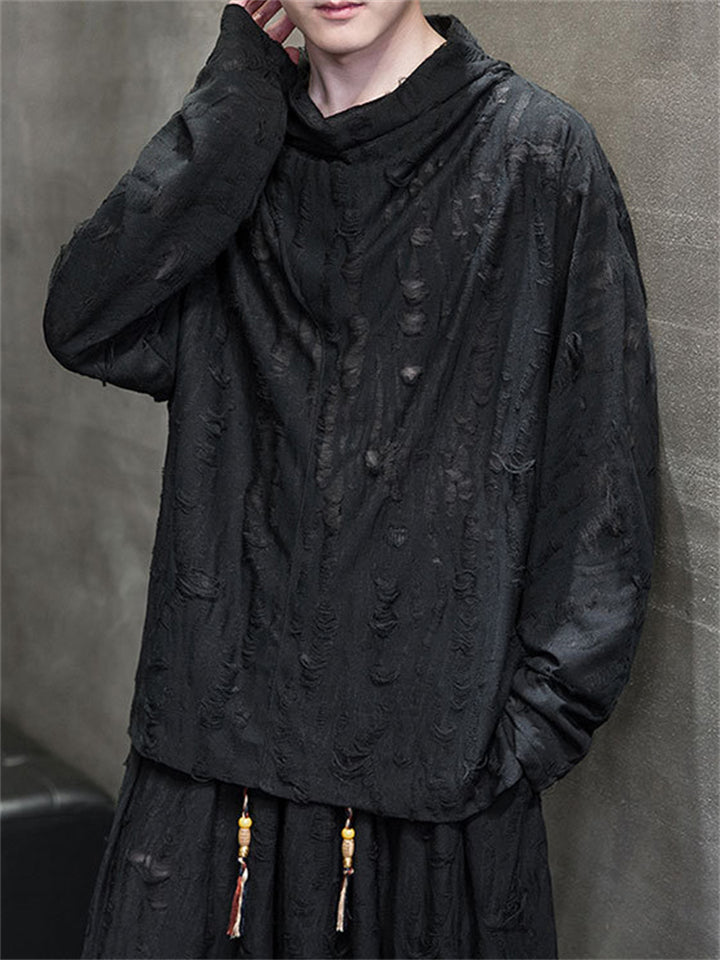 Street Fashion Men's Ripped Hole Long Sleeve Shirt