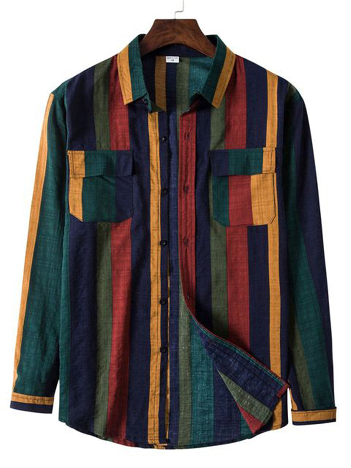 Men's Long Sleeve Linen Stripe Shirt