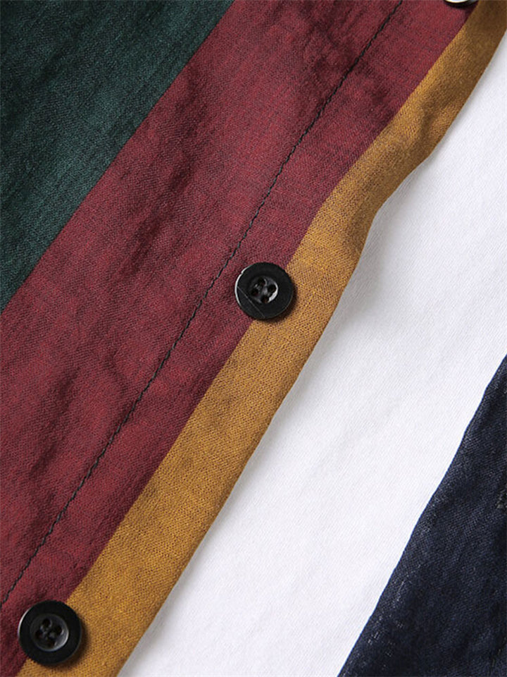 Vintage Long Sleeve Button Up Linen Shirt for Men