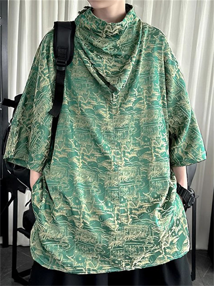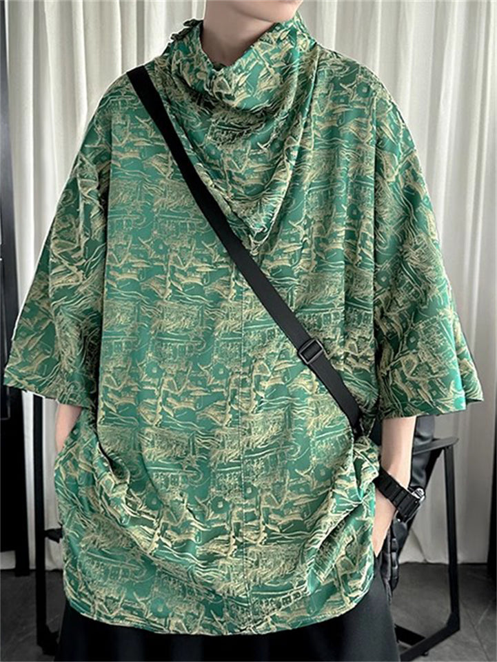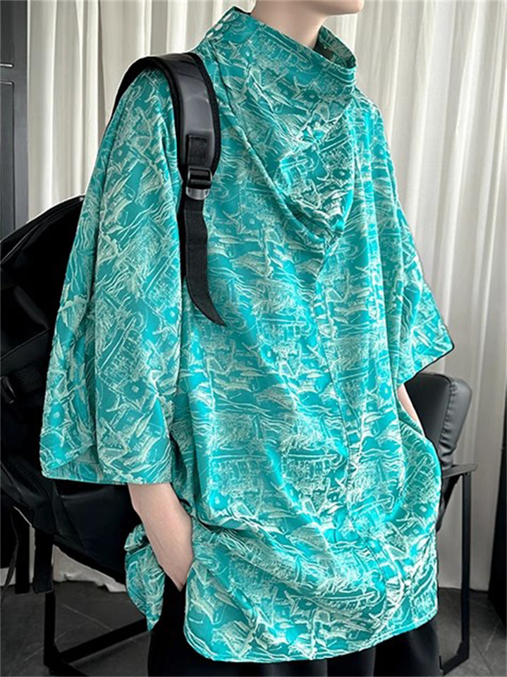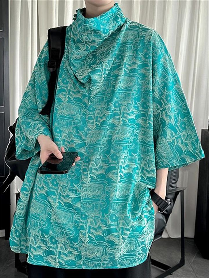 Summer Cool Print Men's Pile Collar 3/4 Sleeve Shirts