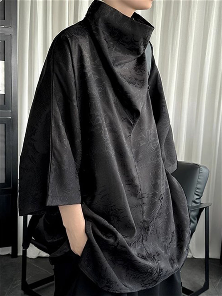 Men's Vintage Summer Solid Color 3/4 Sleeve Stand Collar Shirts