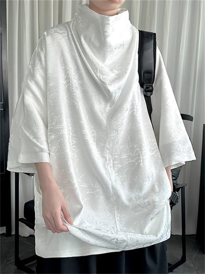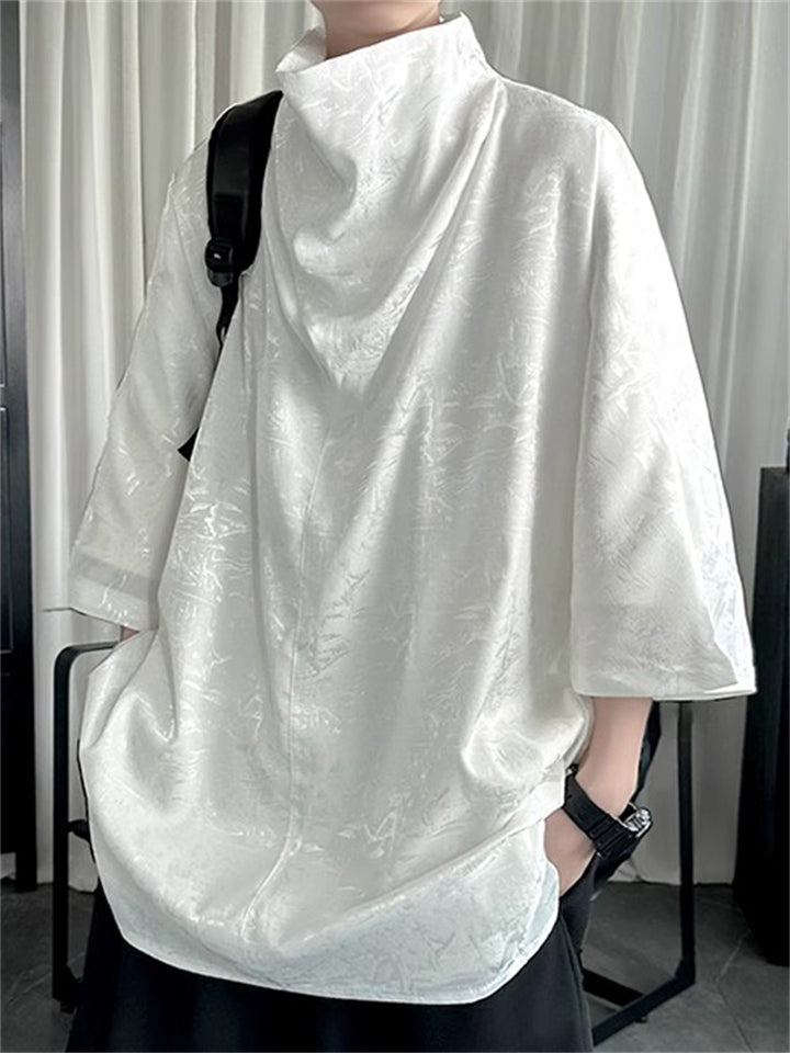Men's Simple Solid Color Stand Collar Pullover Short Sleeve Shirts