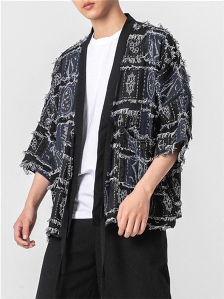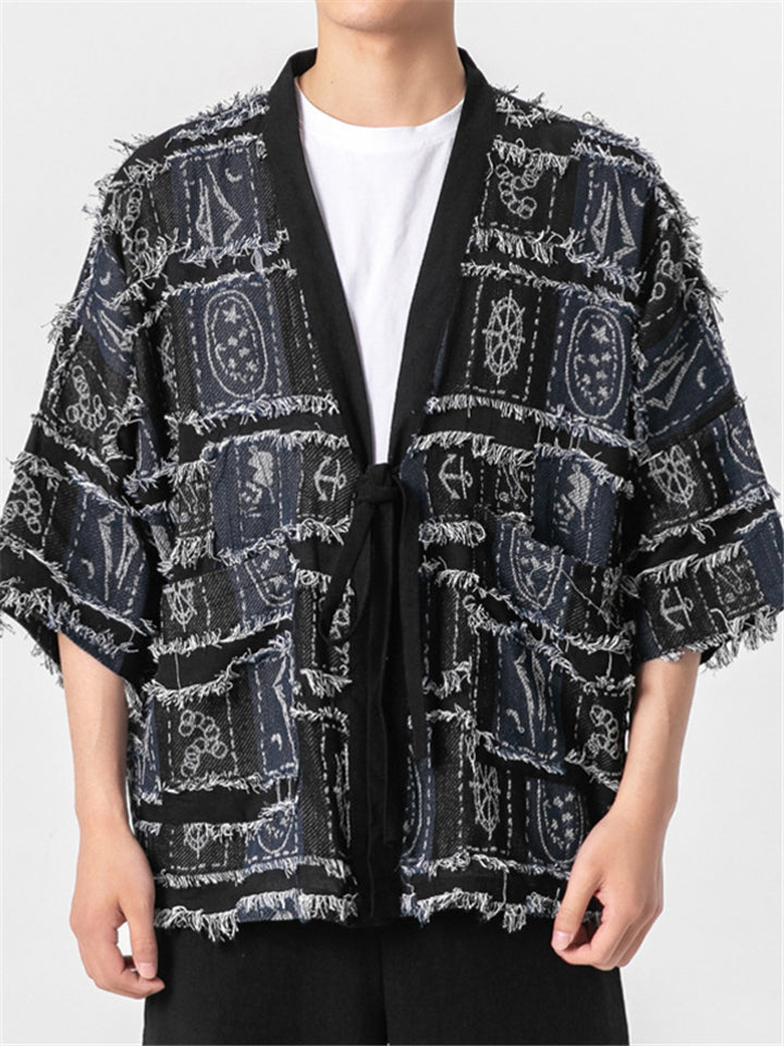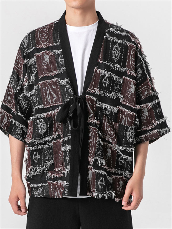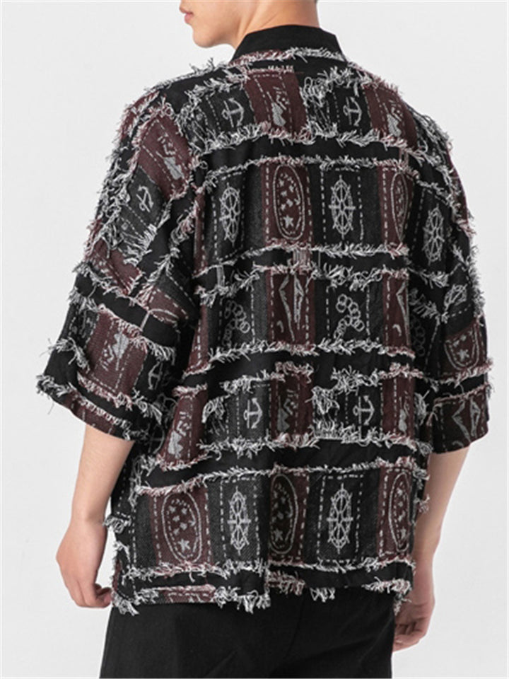 Men's Vintage Patchwork Ethnic Style Printed Half Sleeve Shirts