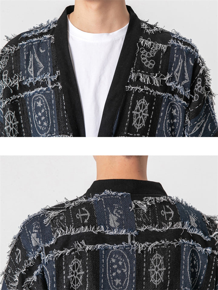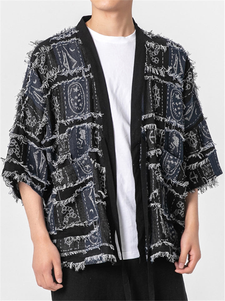 Men's Autumn Vintage Jacquard Stand Collar Long Sleeve Shirts