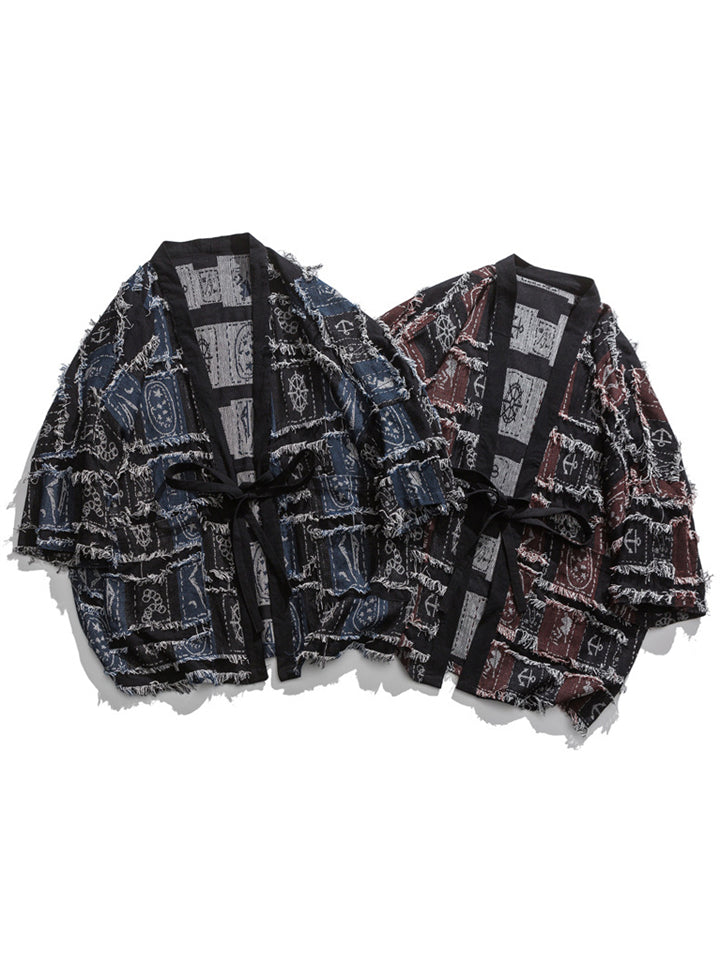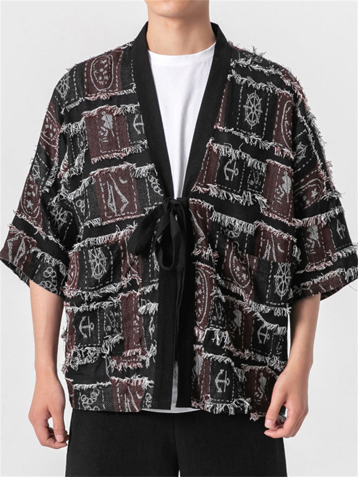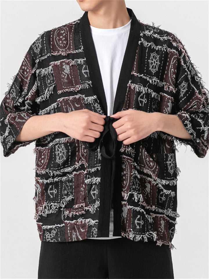 Men's Vintage Patchwork Ethnic Style Printed Half Sleeve Shirts
