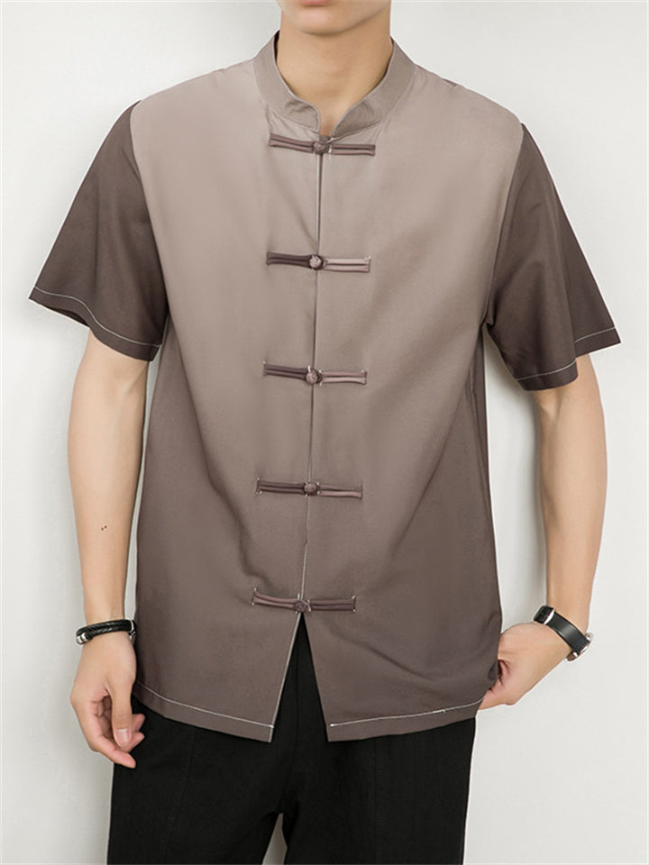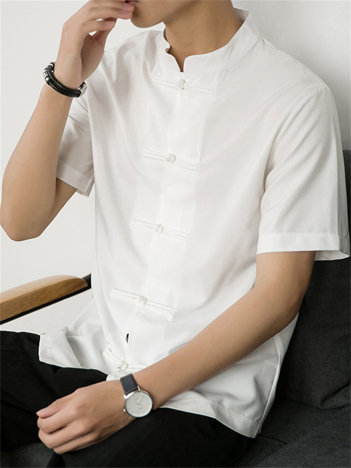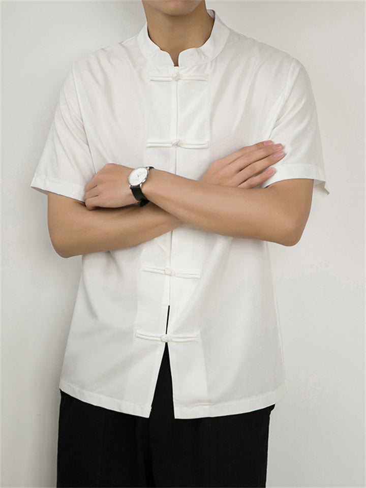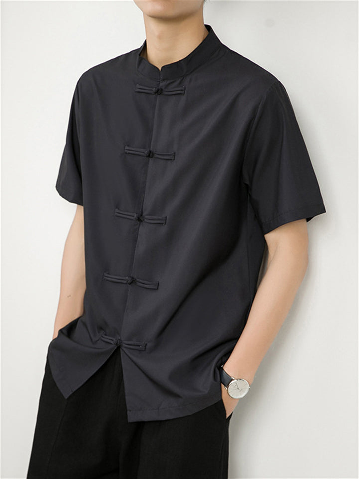 Men's Simple Chinese Style Ramine Stand Collar Tangsuit Shirts