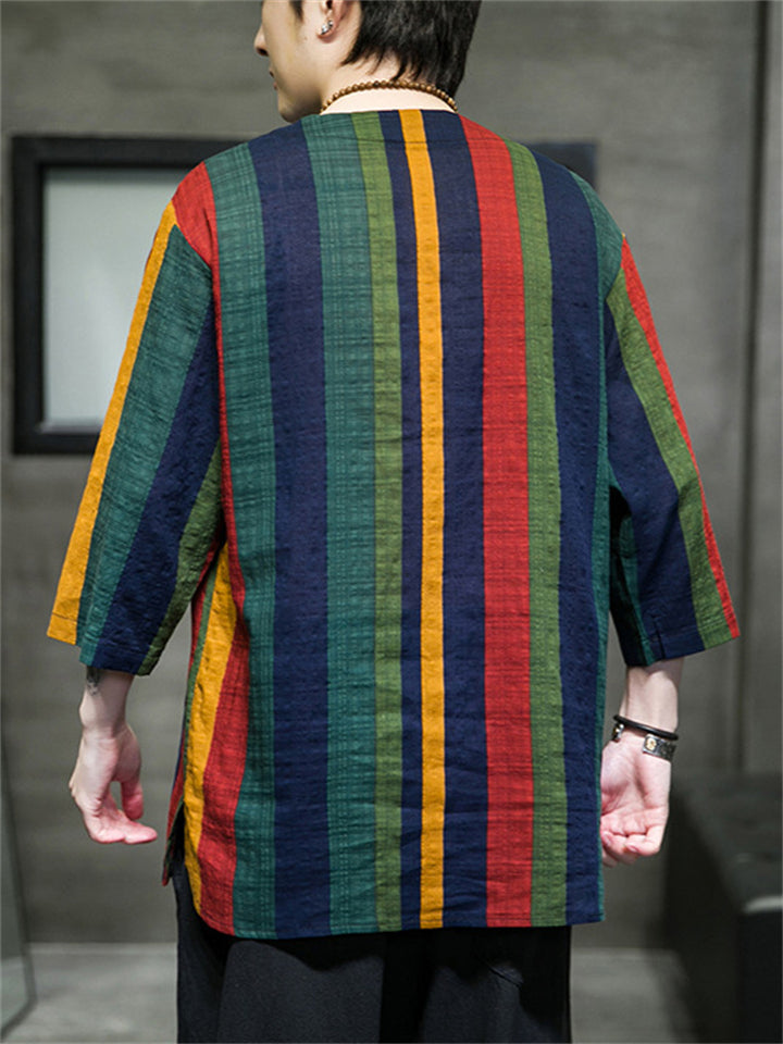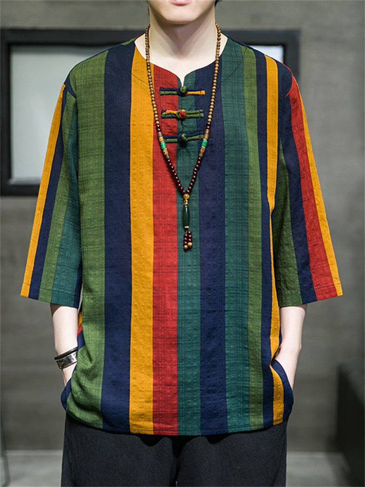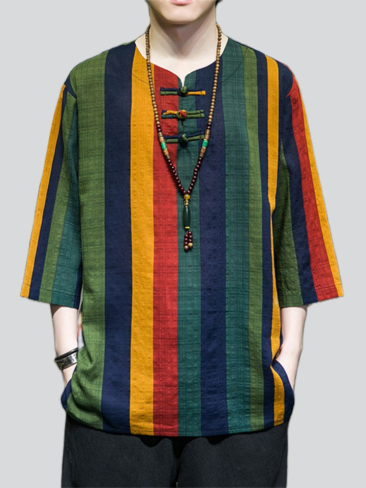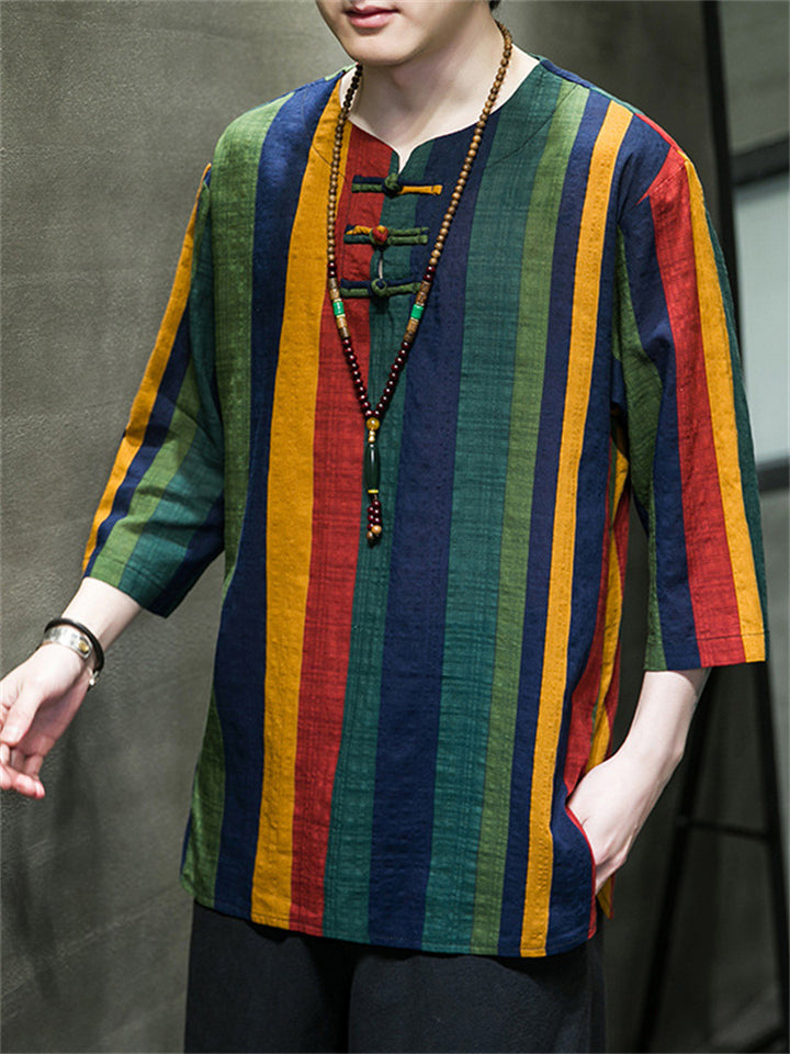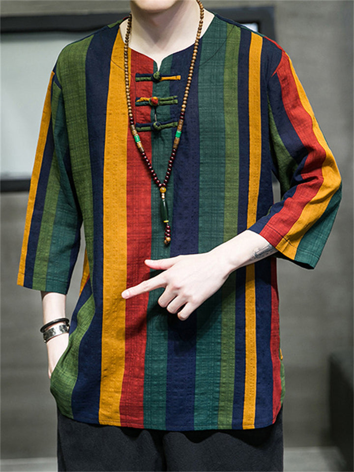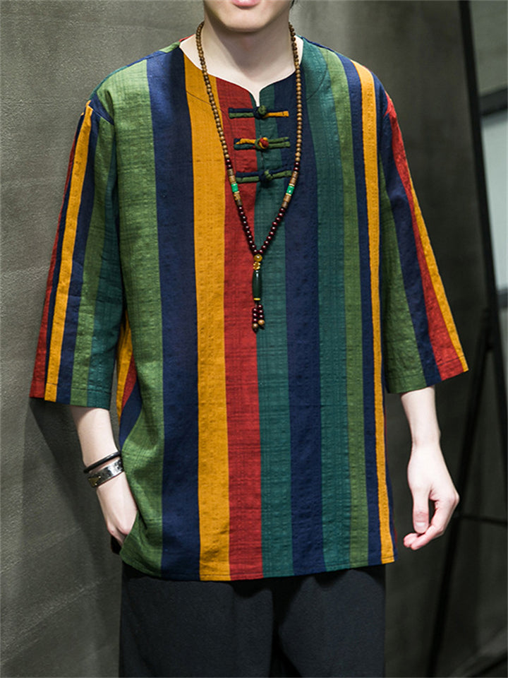 Men's Vintage Summer Solid Color 3/4 Sleeve Stand Collar Shirts