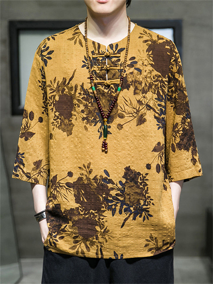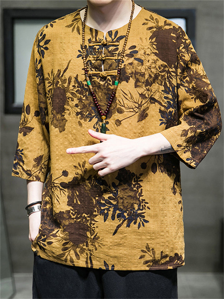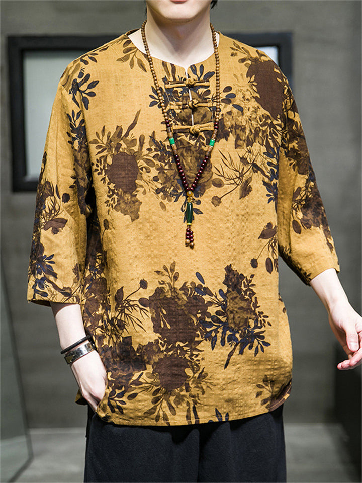 Men's Autumn Vintage Chinese Style Printed Frog Button Tangsuit Shirts