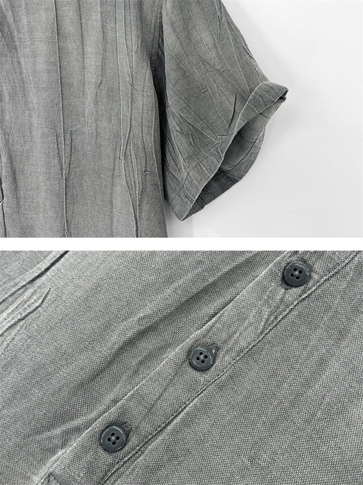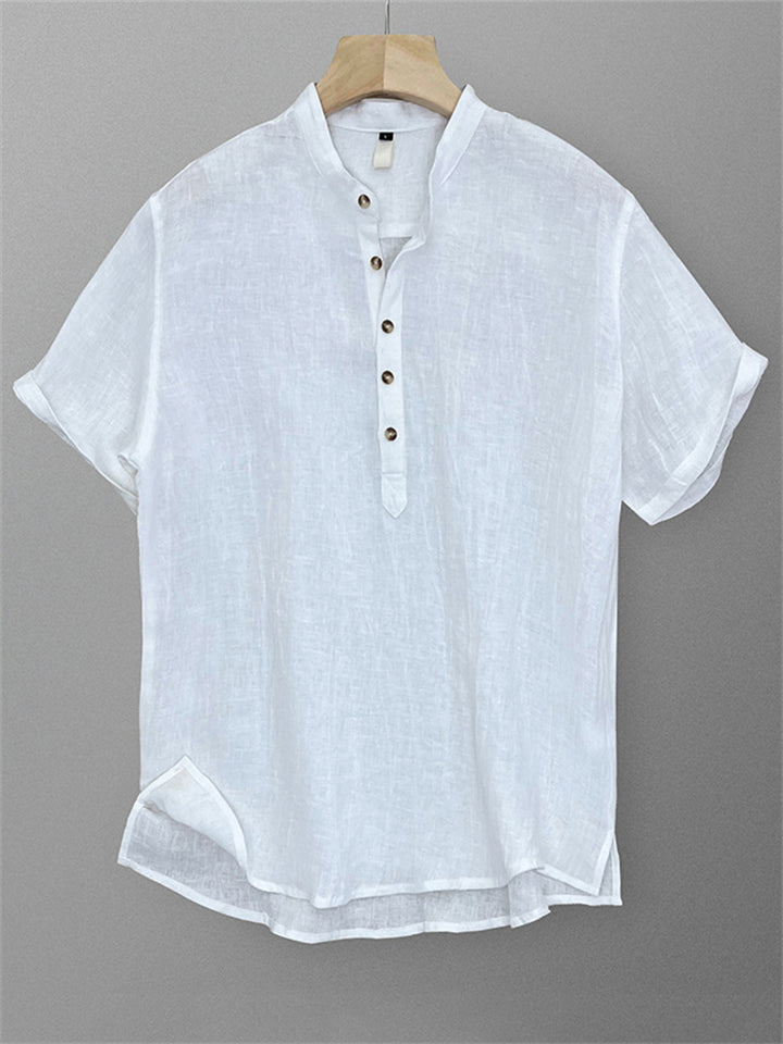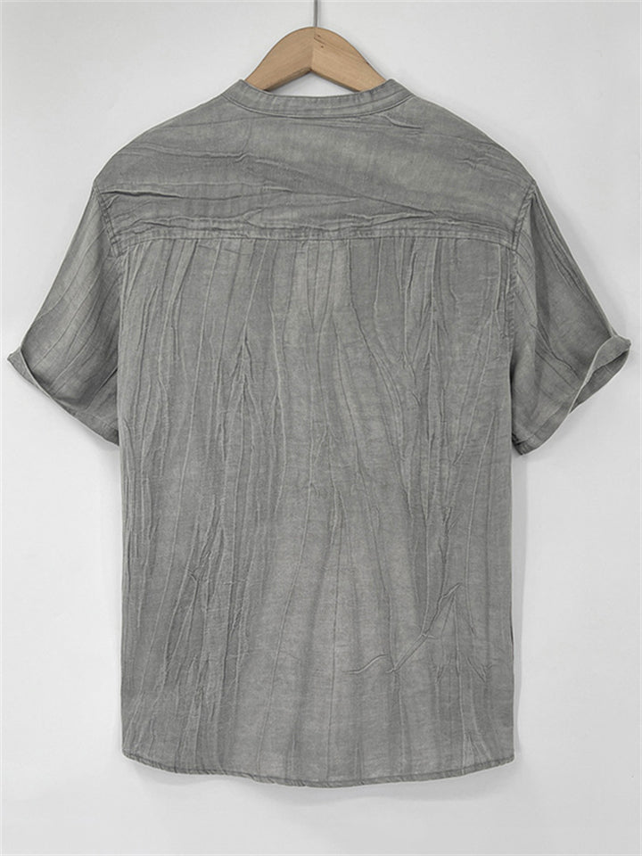 Men's Simple Solid Color Stand Collar Pullover Short Sleeve Shirts