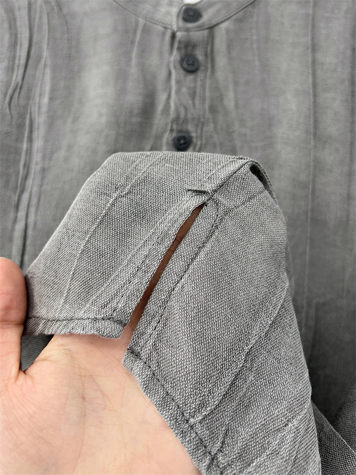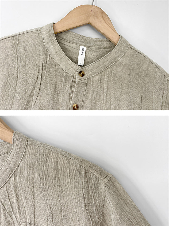 Men's Solid Color Cotton Linen Stand Collar Pullover Long Sleeve Shirts