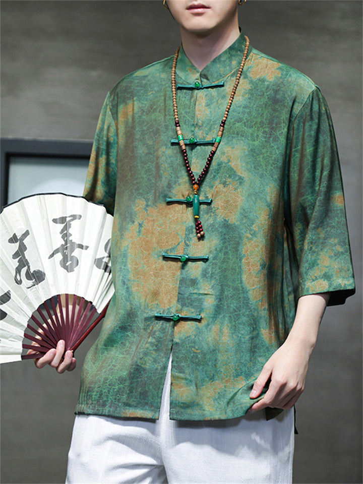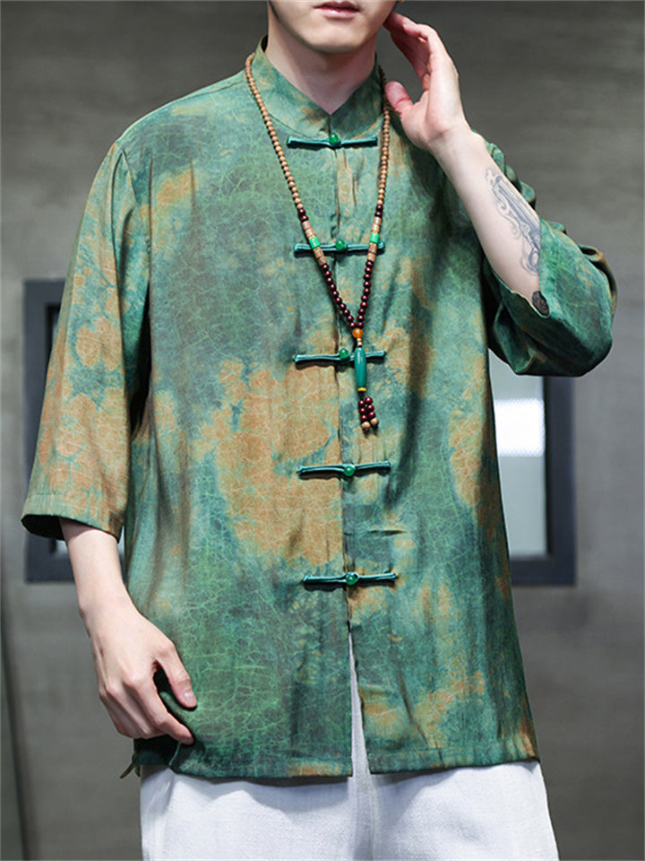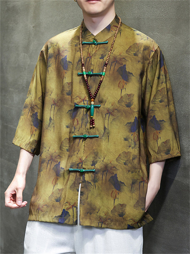 Men's Autumn Vintage Chinese Style Printed Frog Button Tangsuit Shirts