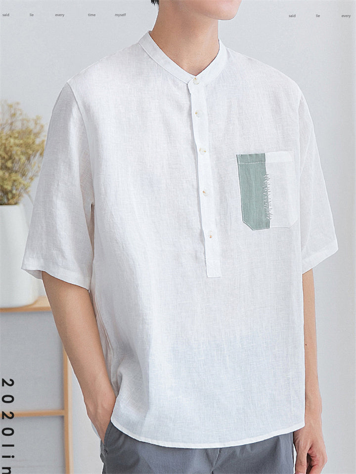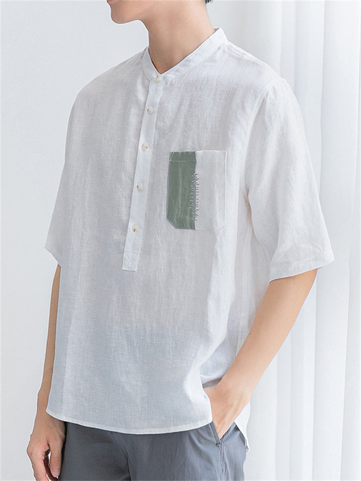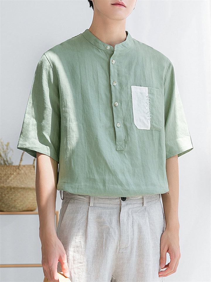 Men's Simple Solid Color Stand Collar Pullover Short Sleeve Shirts