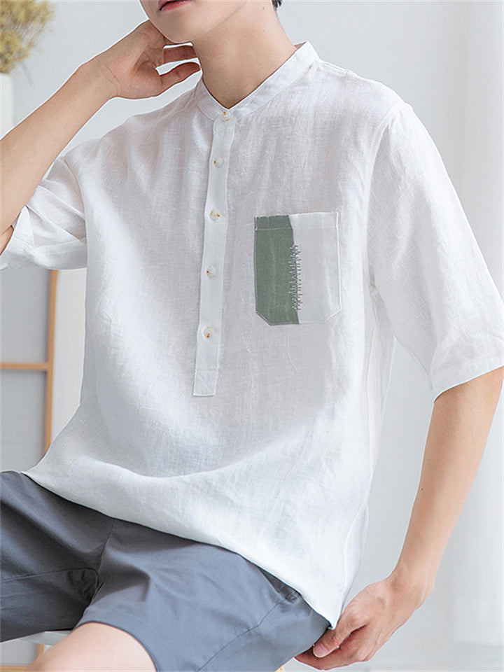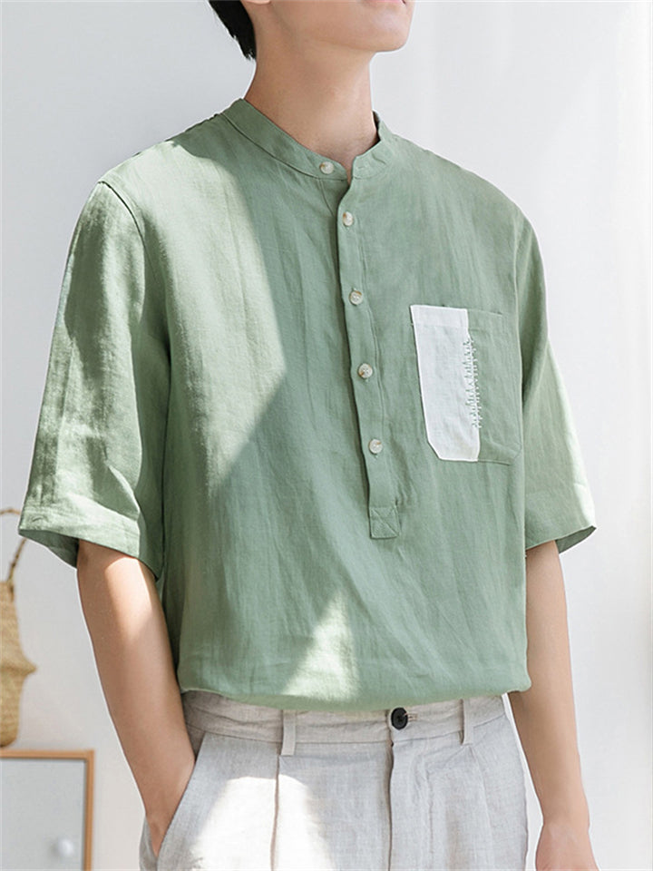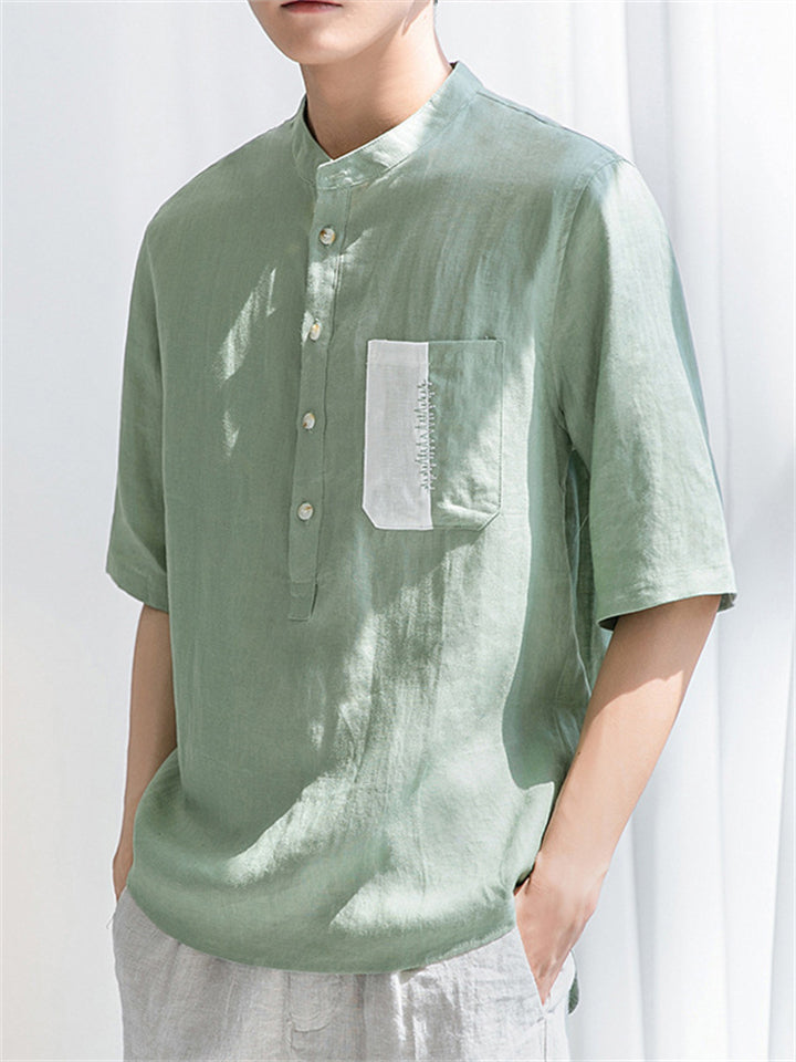 Men's Vintage Summer Solid Color 3/4 Sleeve Stand Collar Shirts