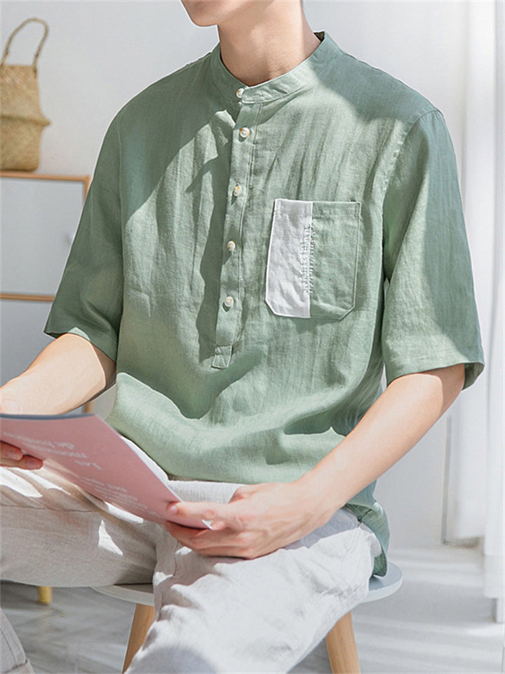 Men's Summer Simple Stand Collar Button Up Half Sleeve Shirts