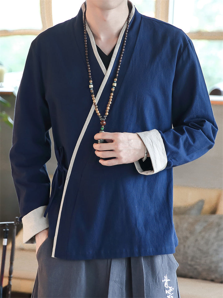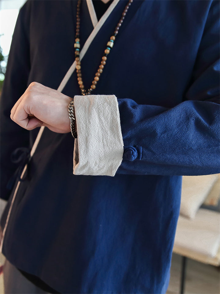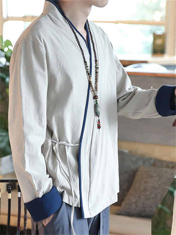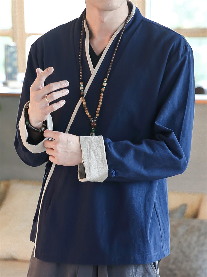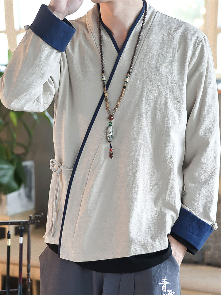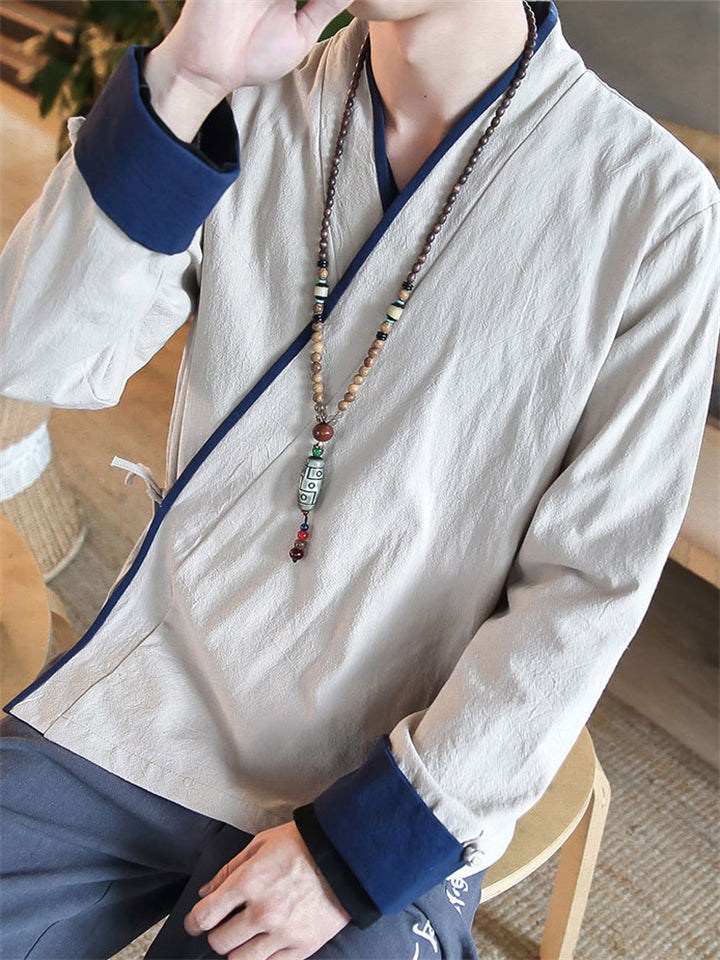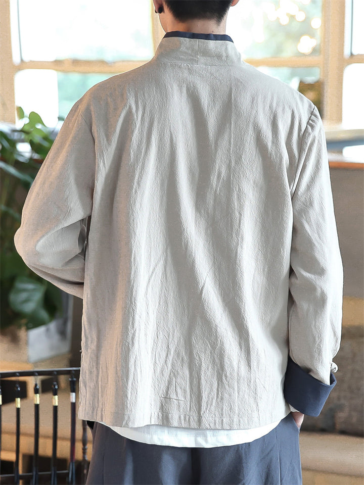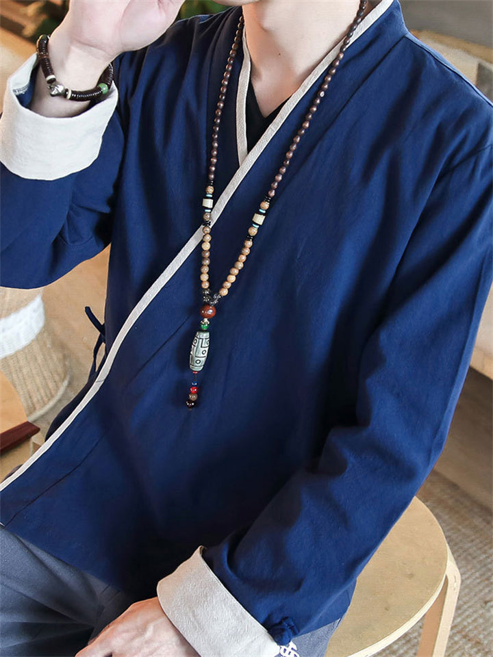 Men's Autumn Solid Color Zen Style Pullover Long Sleeve Shirts