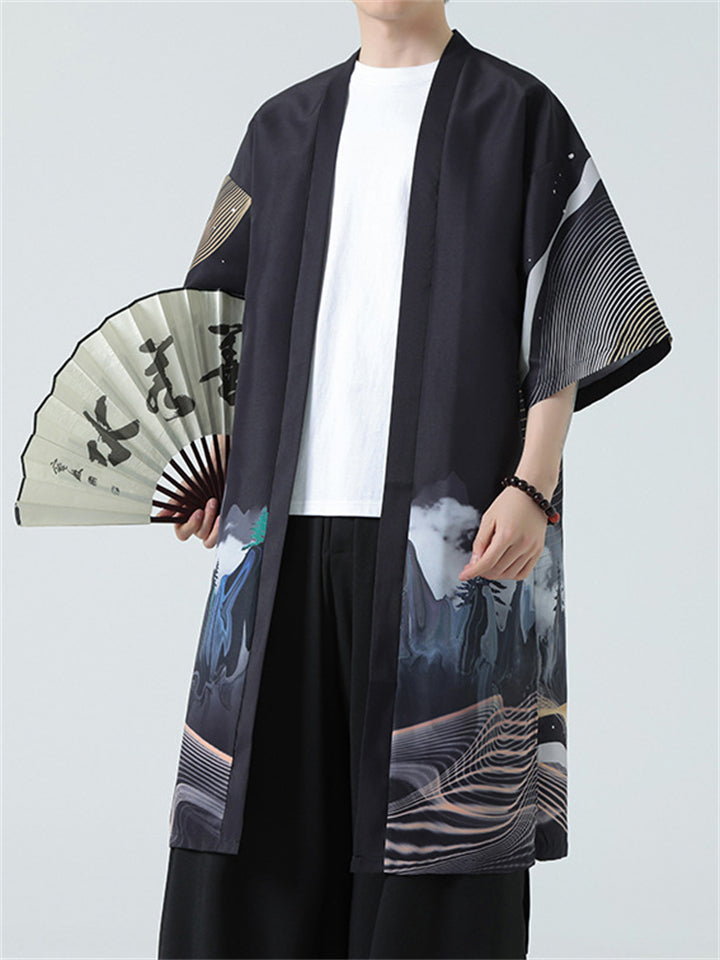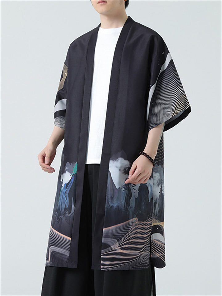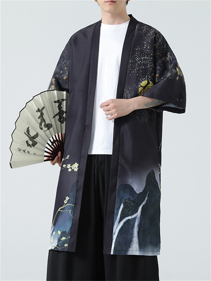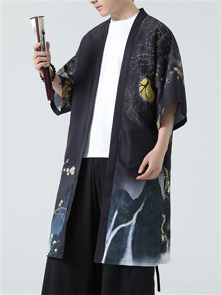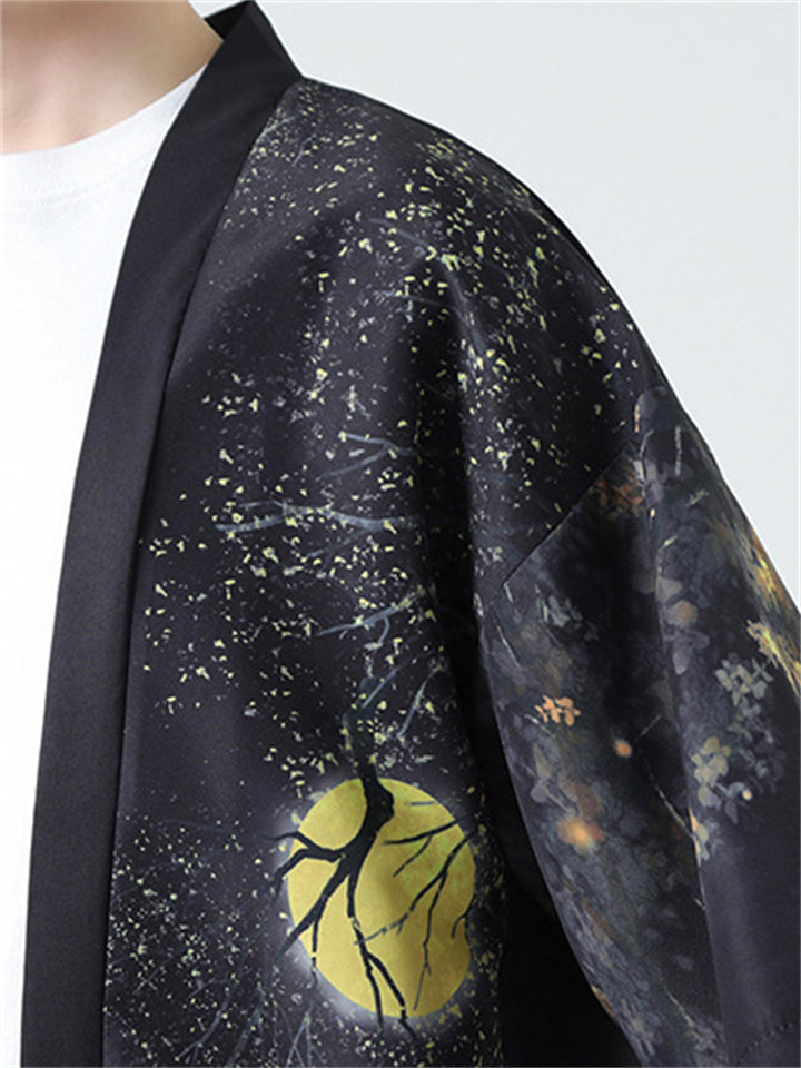 Vintage Night Moon Print Cardigan Hanfu Shirt