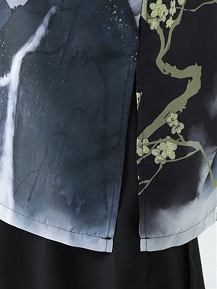 Men's Autumn Vintage Chinese Style Printed Frog Button Tangsuit Shirts