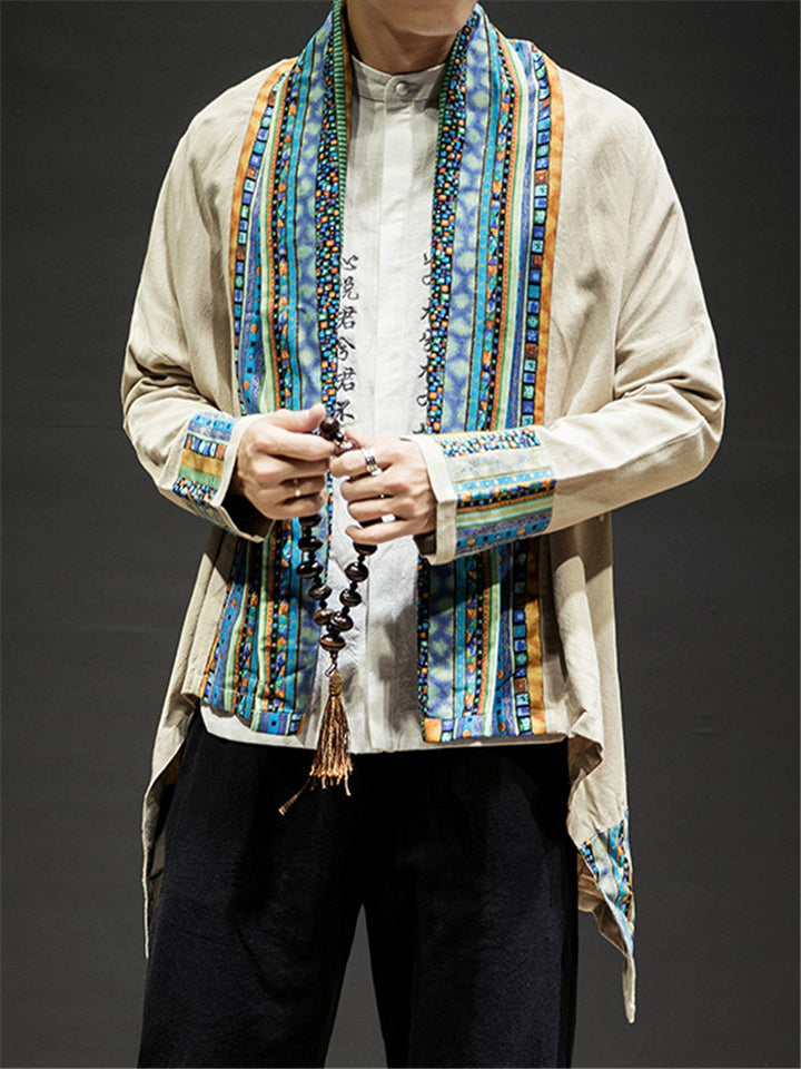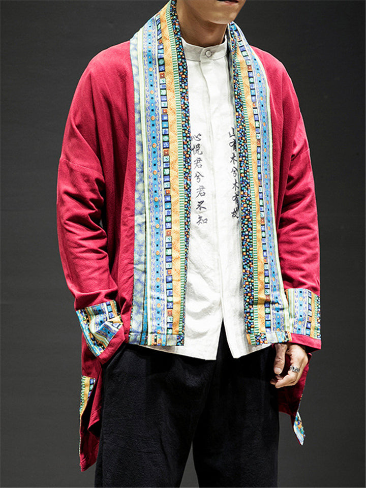 Men's Autumn Solid Color Corduroy Zen Style Lace Up Cardigan Jackets