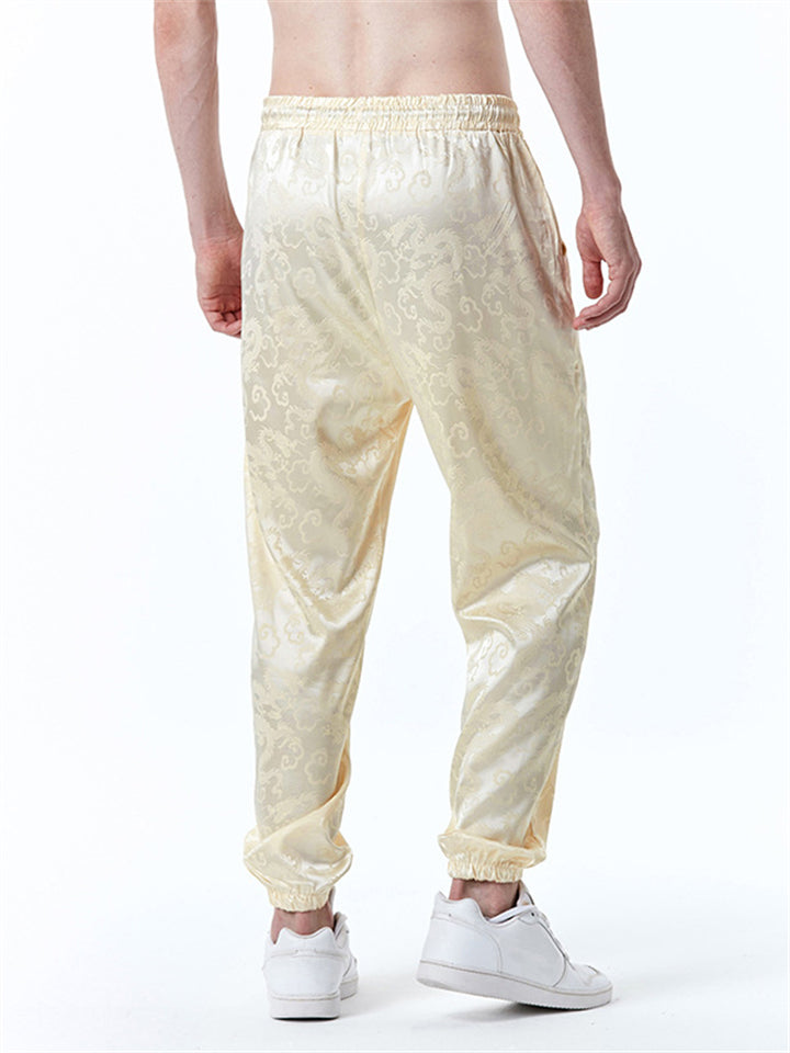 Men's Trendy Chinese Style Loong Printed Frog Button Pink Tangsuit Jacket