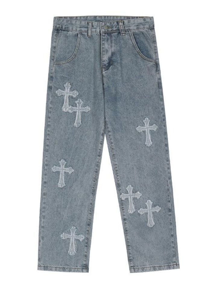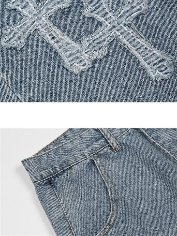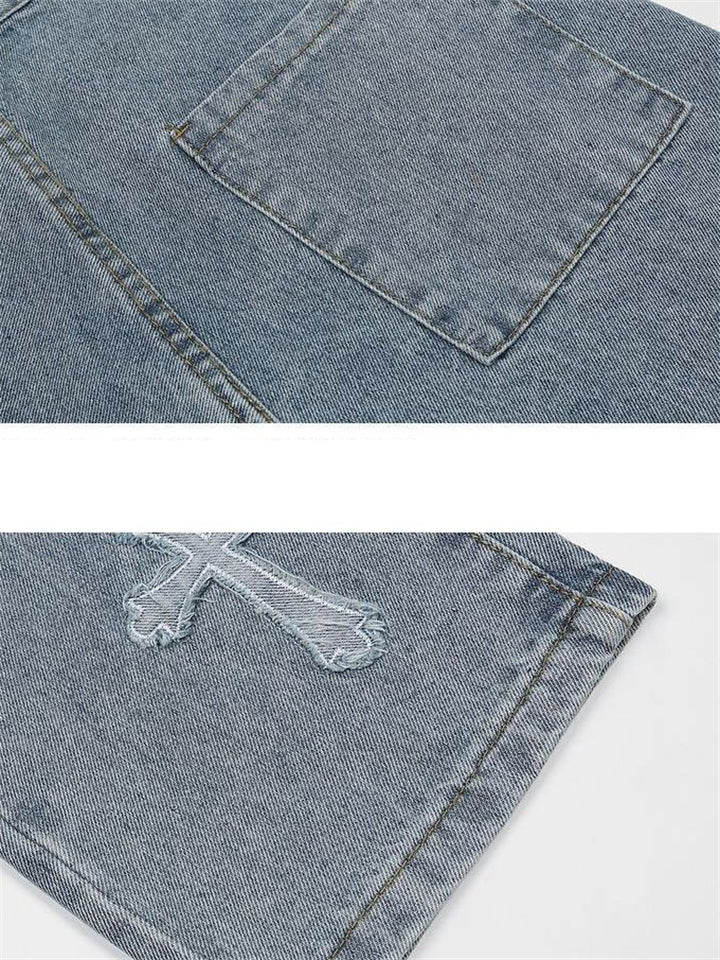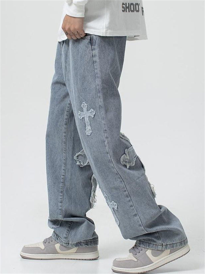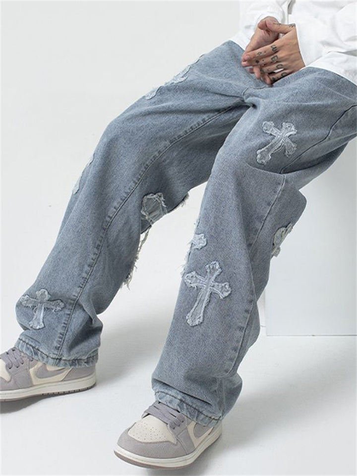 Fashion Cross Decorated Loose Wide Leg Jeans