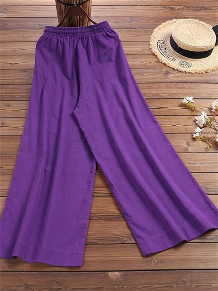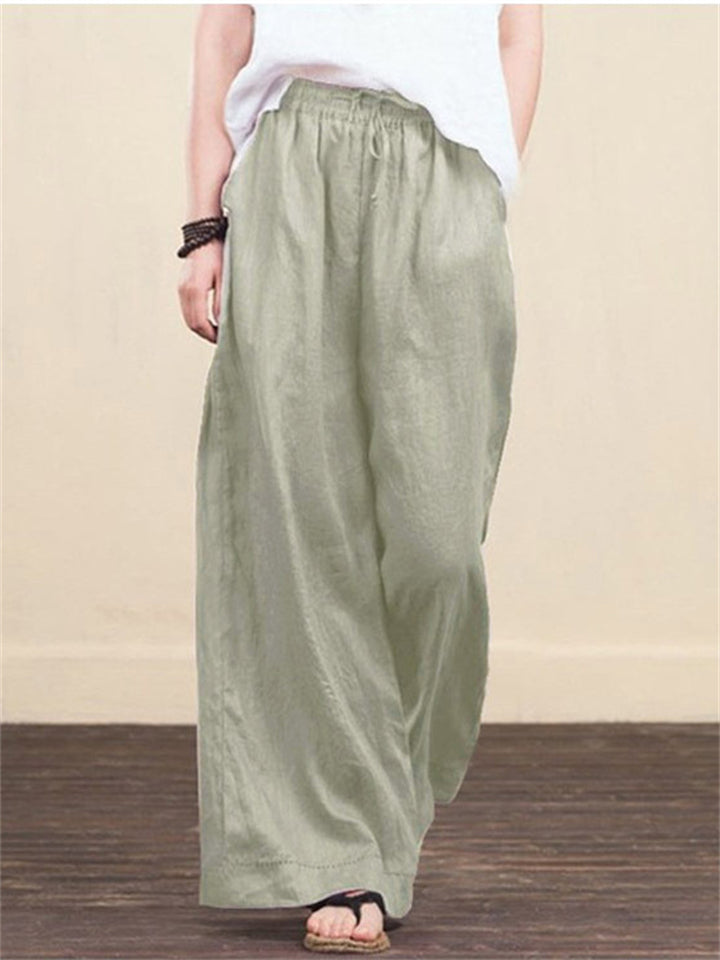 Women's Summer Cool Solid Color Elastic Waist Drawstring Pants