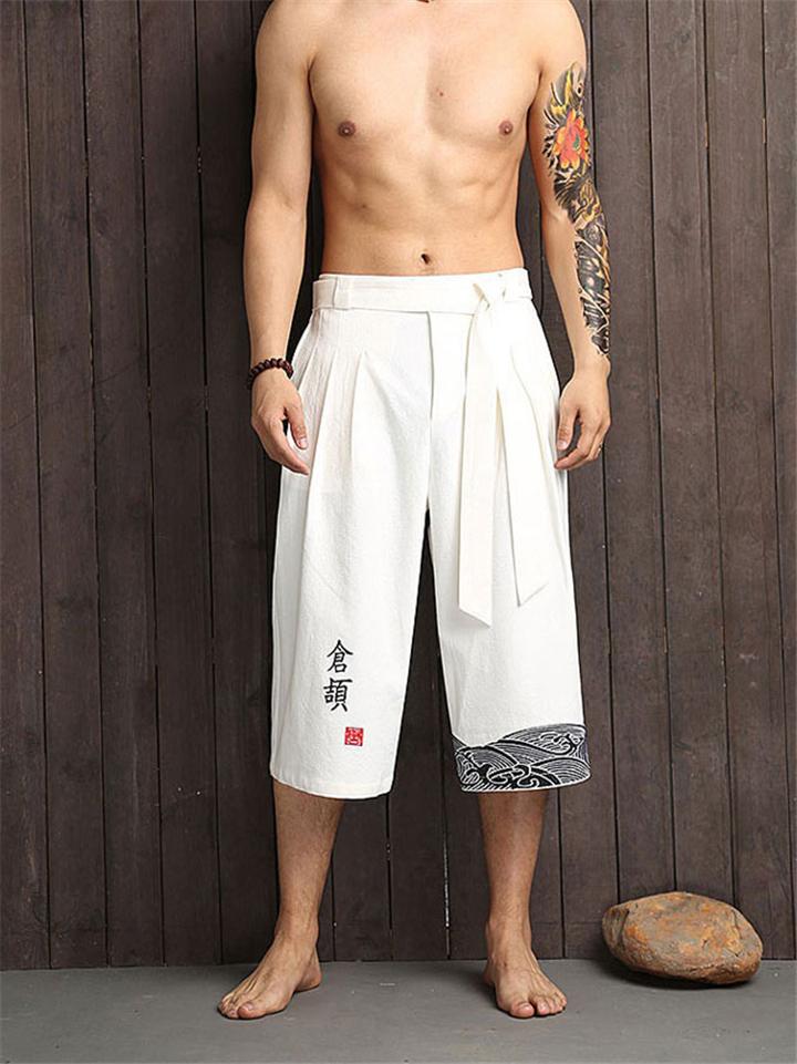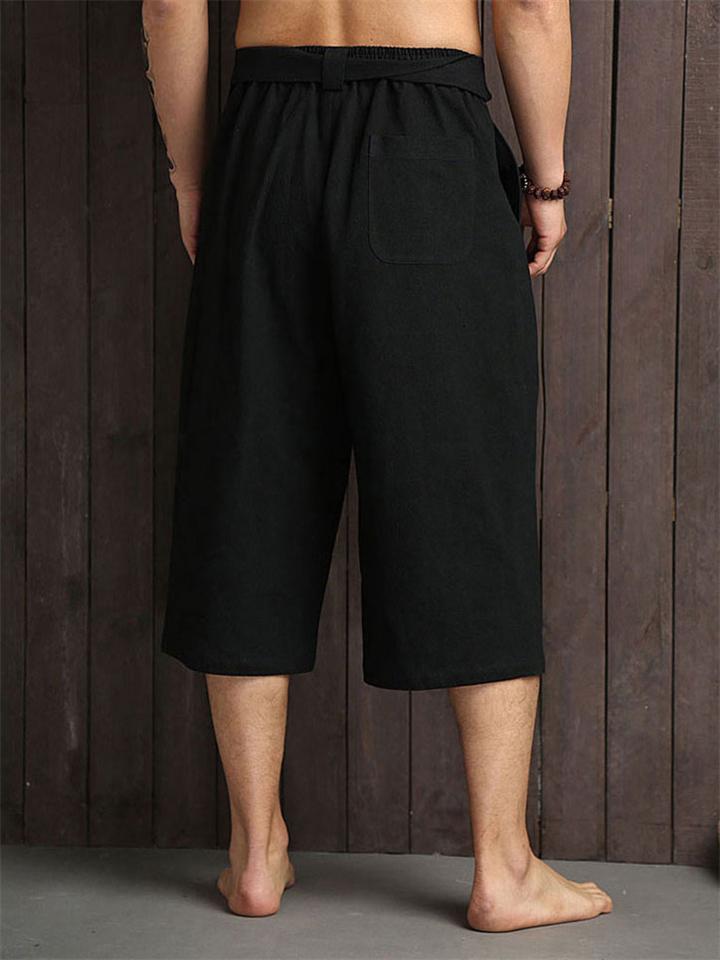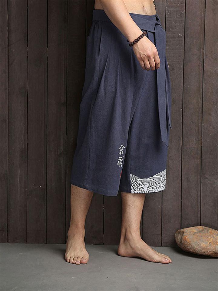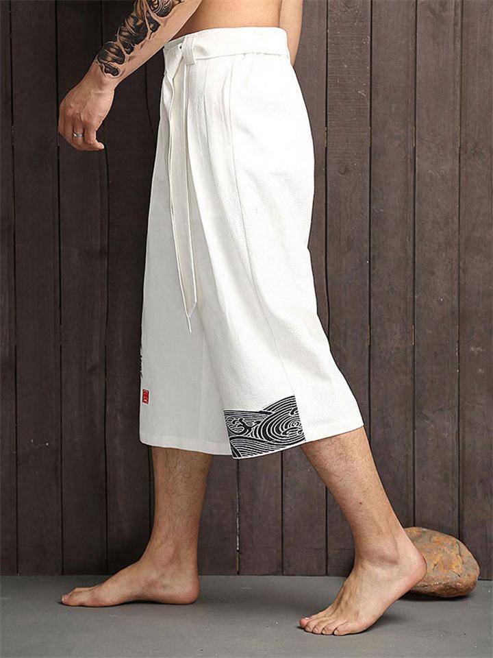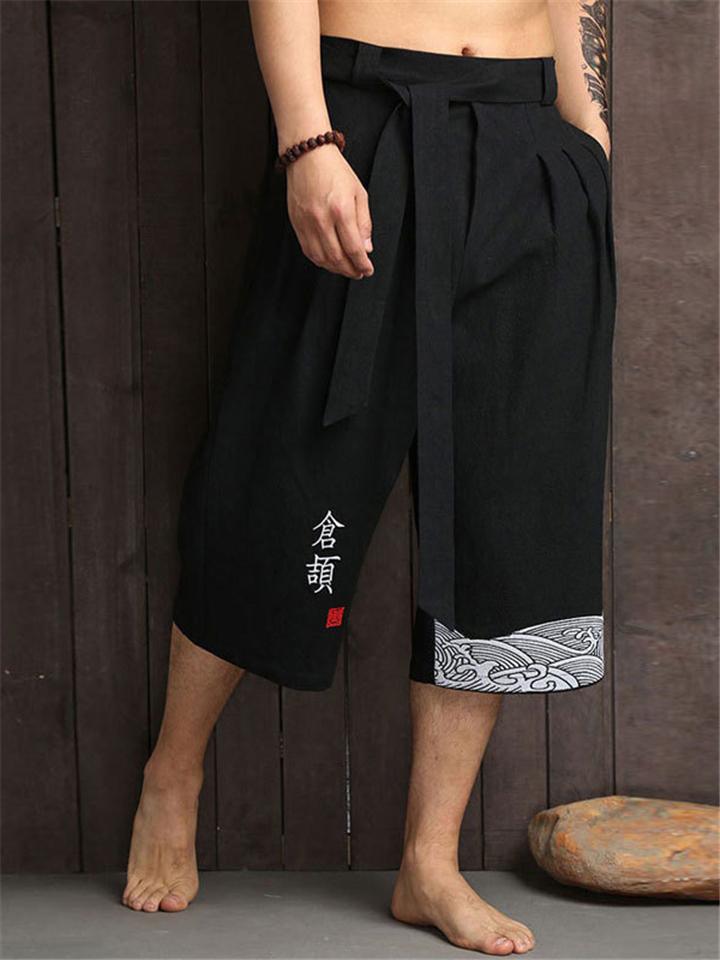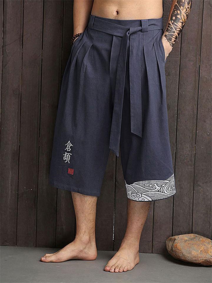 Men's Japanese Style Vintage Solid Color Texture Scimitar Pants