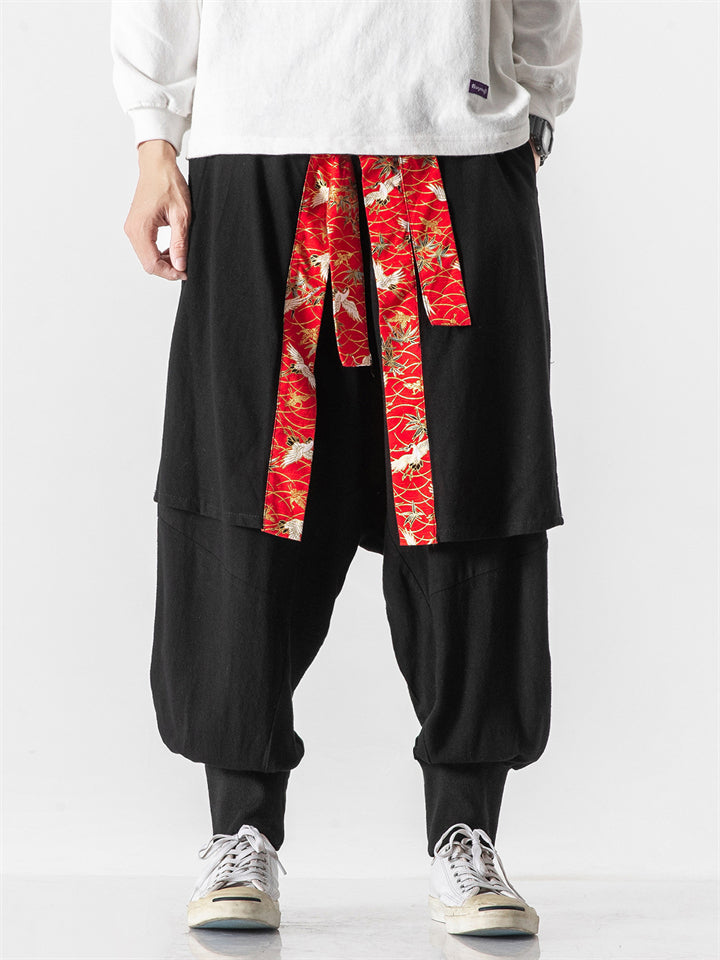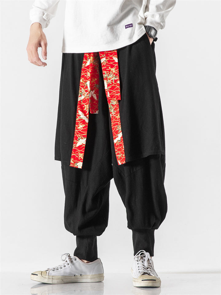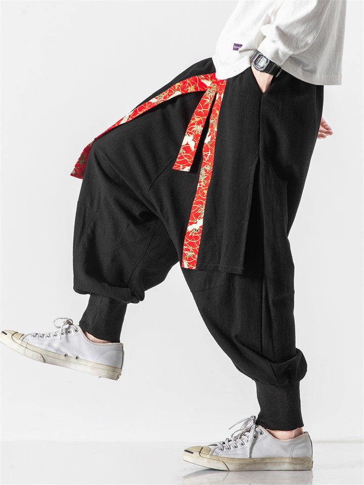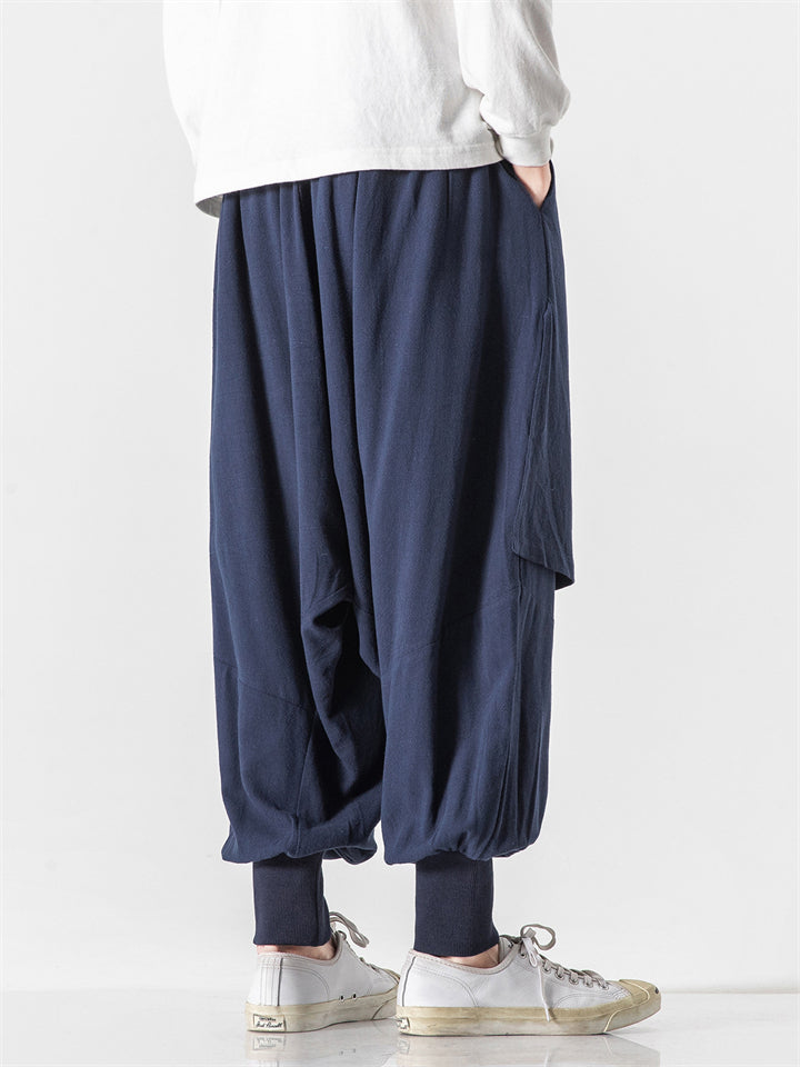 Men's Japanese Style Vintage Solid Color Texture Scimitar Pants