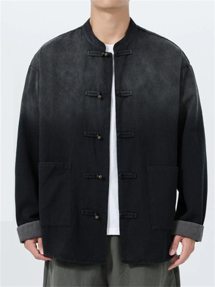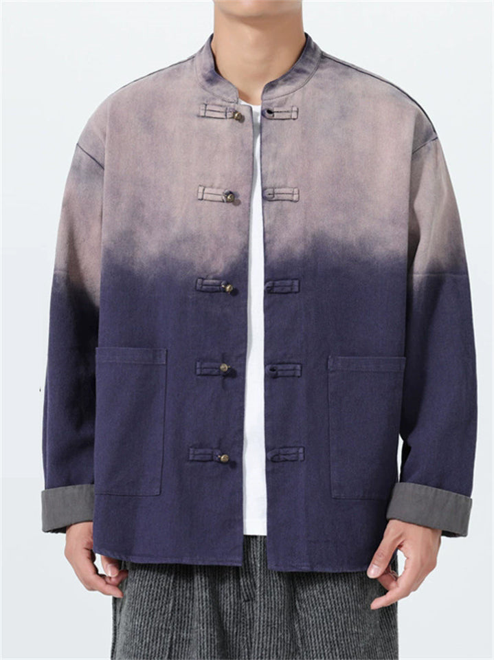 Men's Chinese Style Gradient Stand Collar Long Sleeve TangSuit Jackets