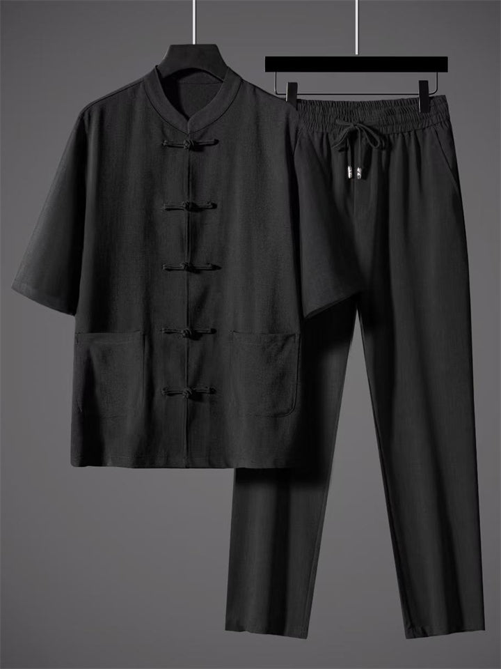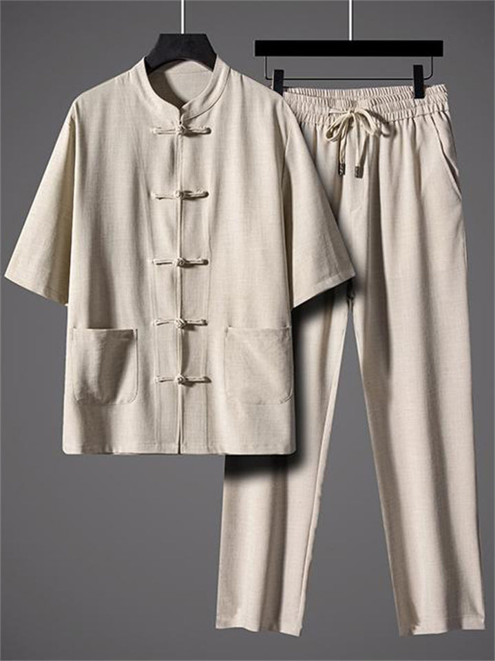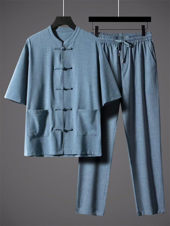 Men's Comfy Simple Chinese Style Summer Short Sleeve Tangsuit Outfits