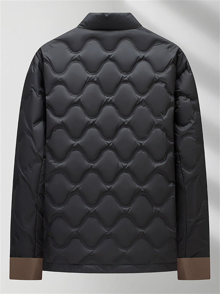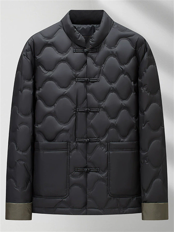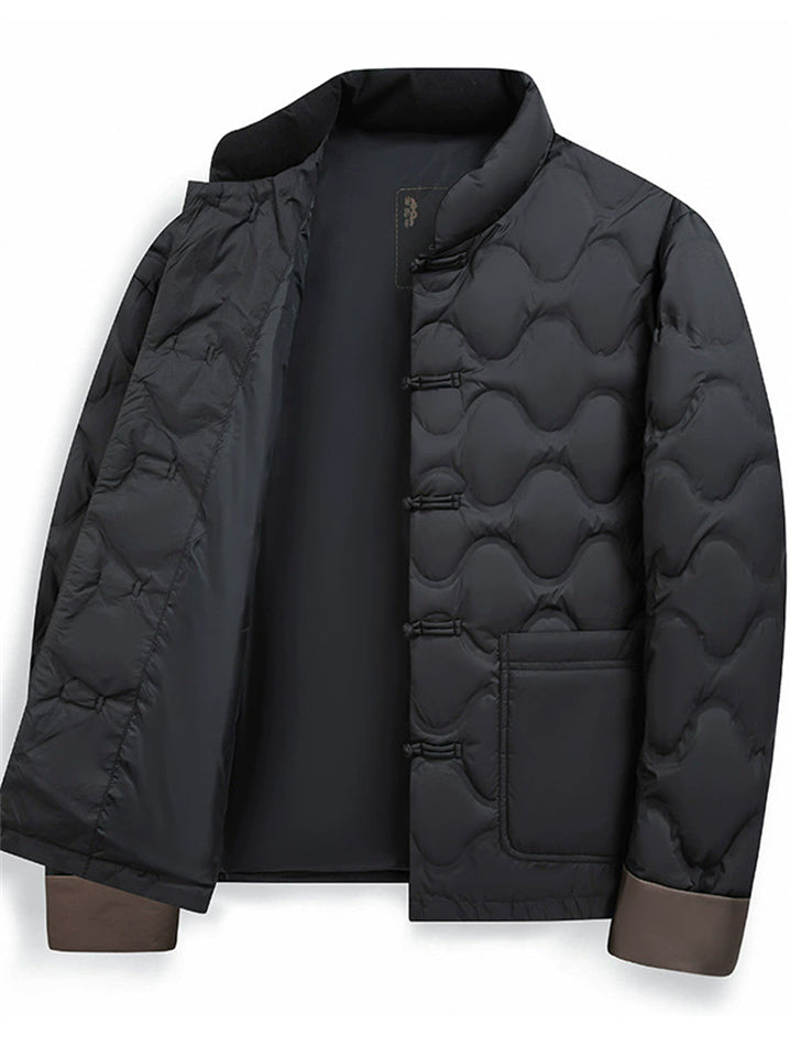 Men's Contrast Cuff Lightweight Black Stand Collar Chinese Knot Down Coat