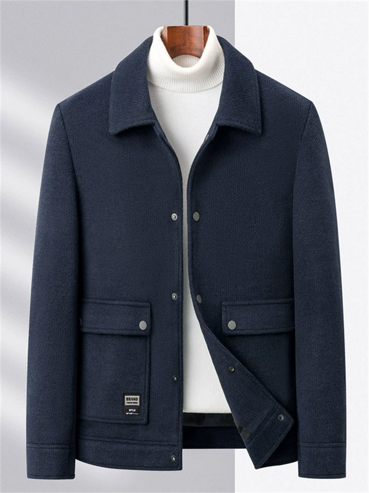 Men's Mid-aged Faux Woolen Solid Color Lapel Long Sleeve Jackets