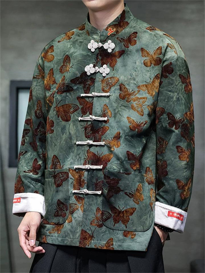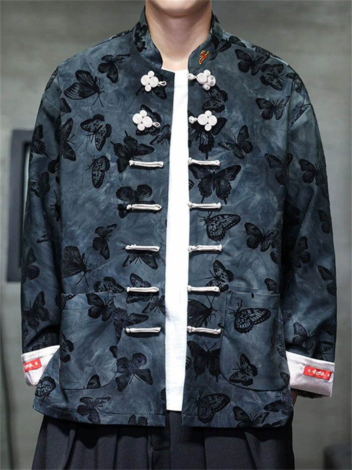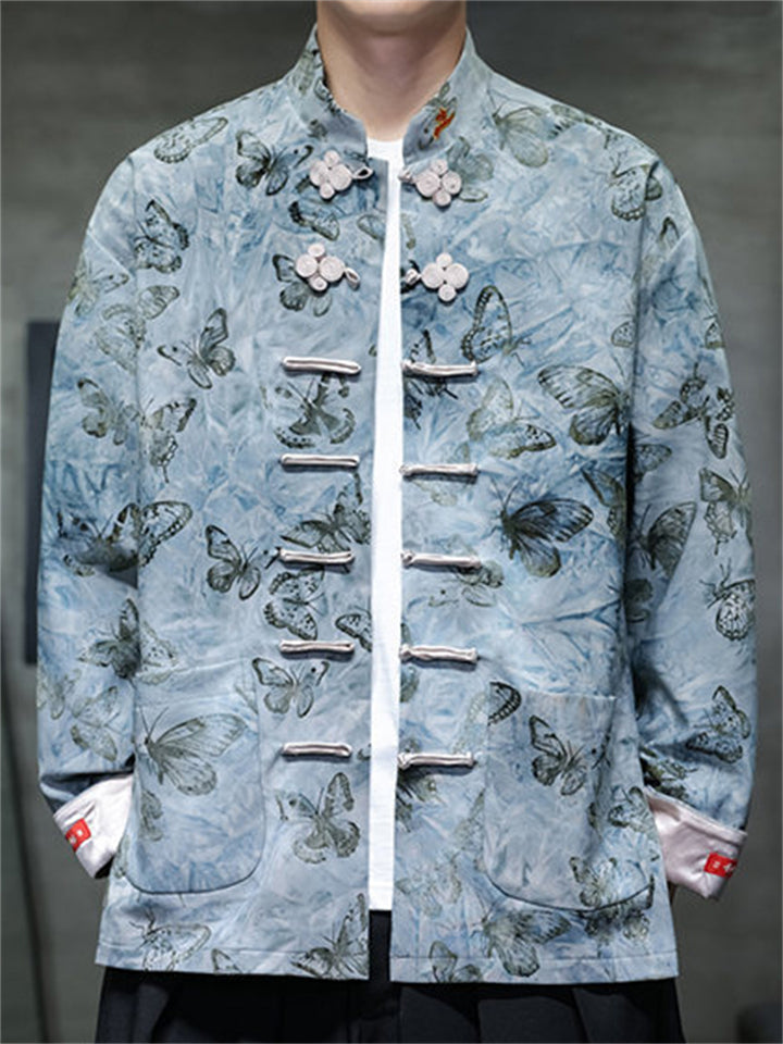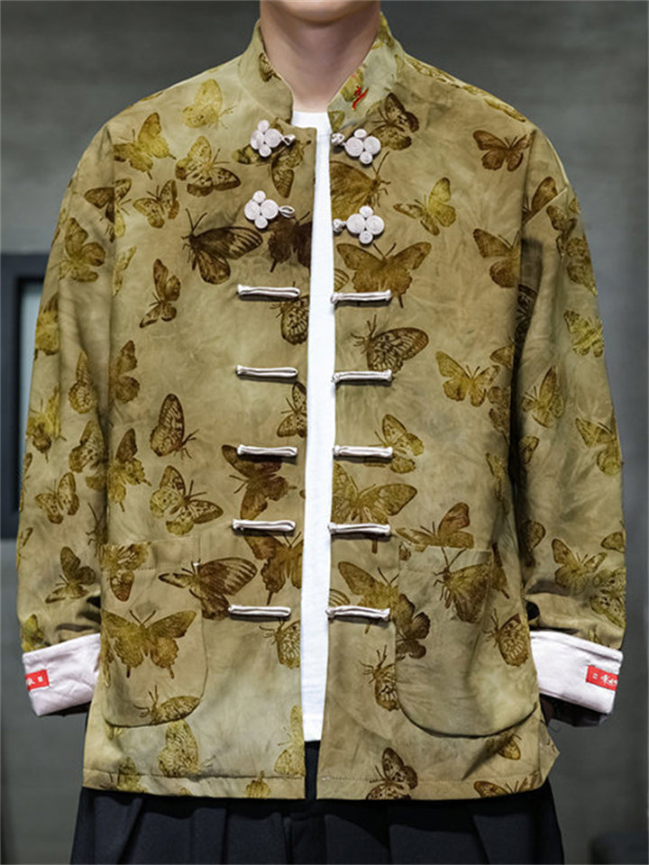 Men's Spring Butterfly Print Chinese Style Jacket with Knot Buttons