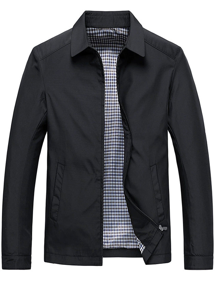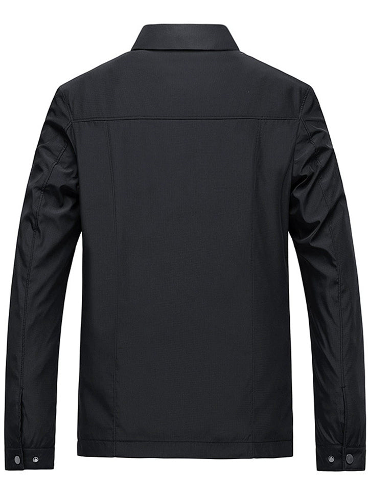 Middle-aged Men's Autumn Casual Solid Color Lapel Zip Up Jackets