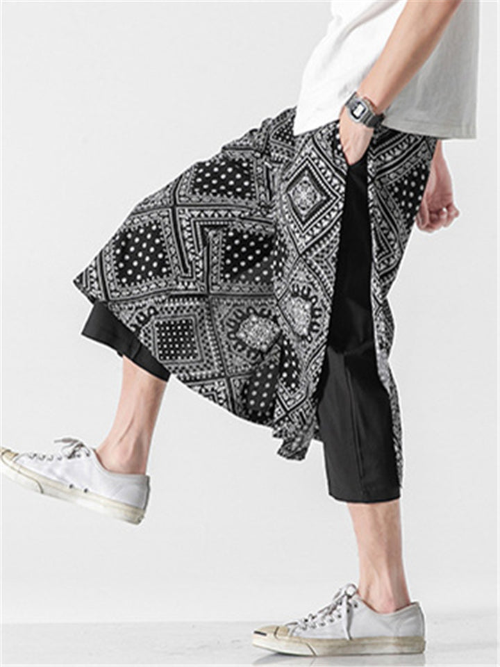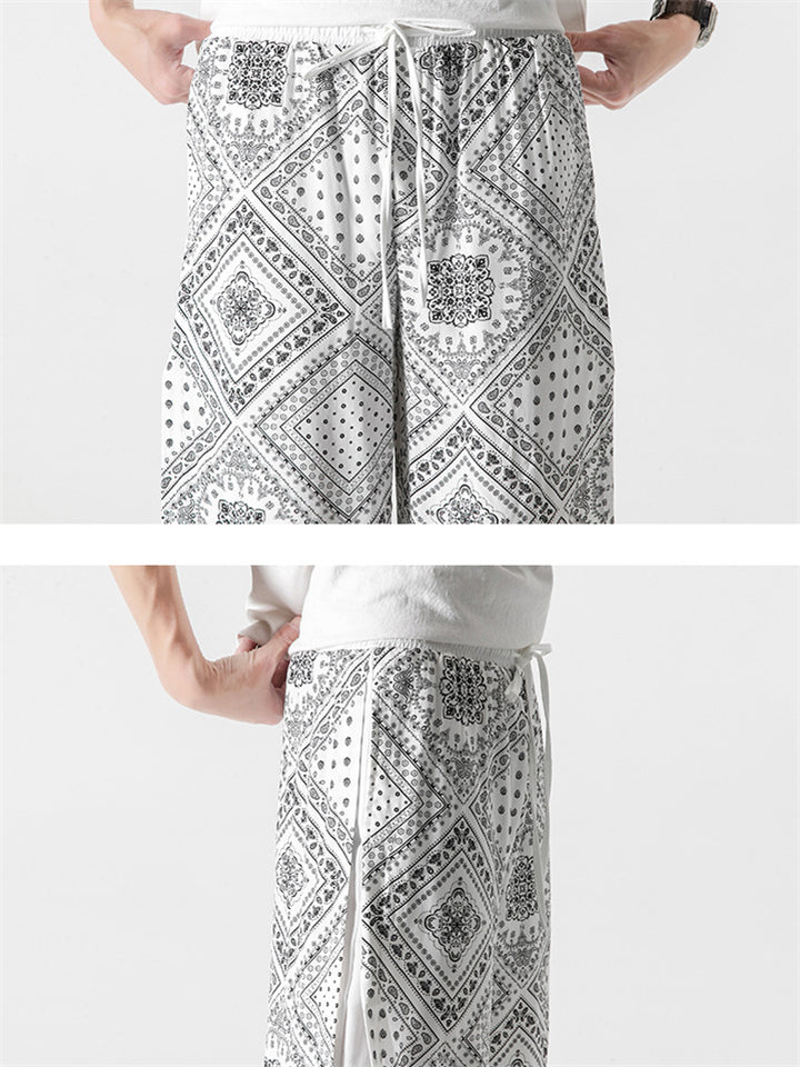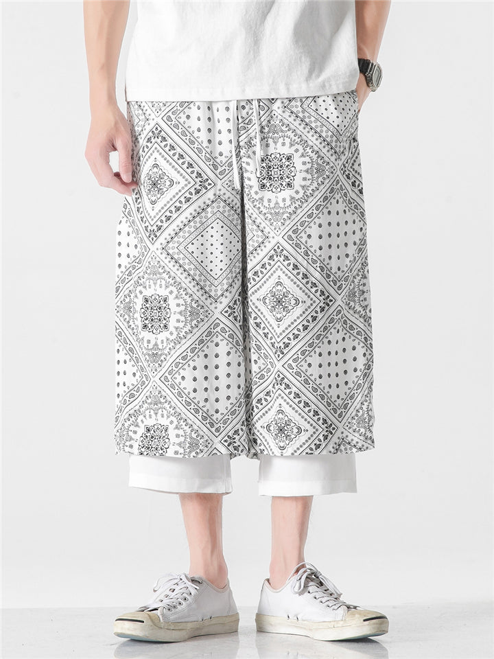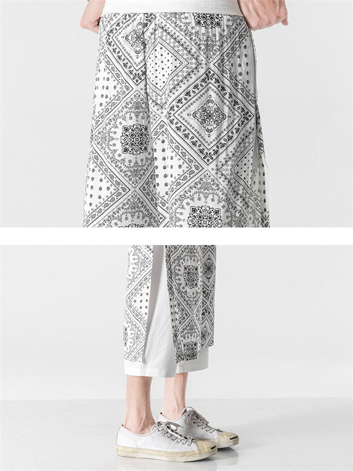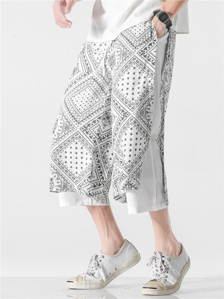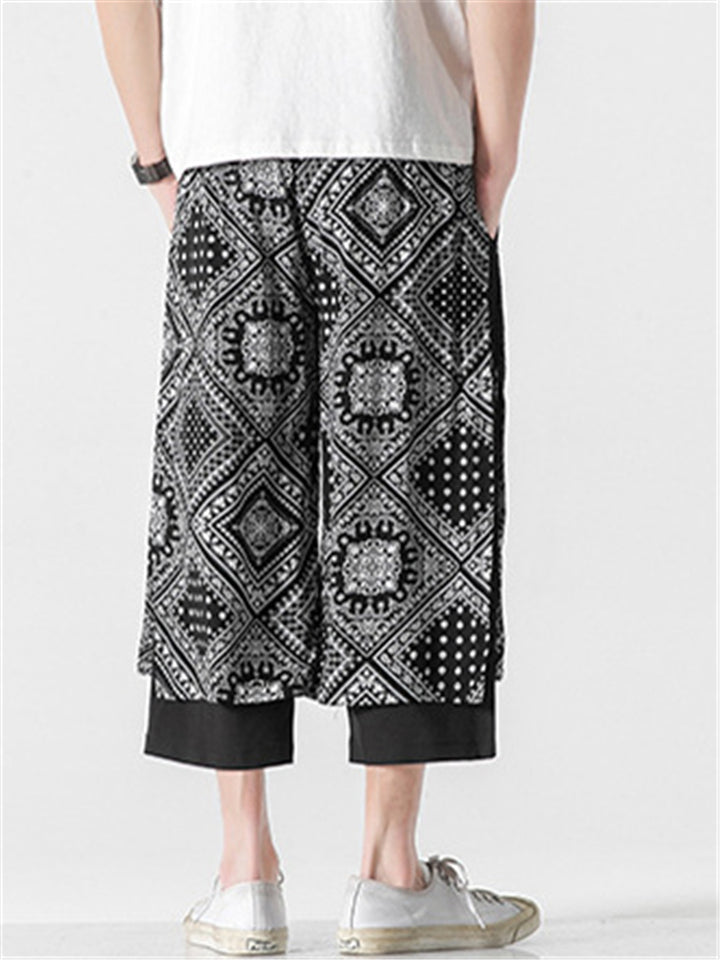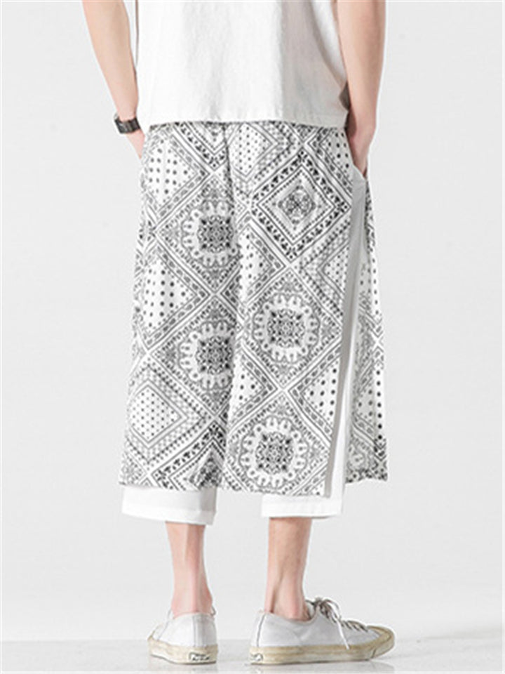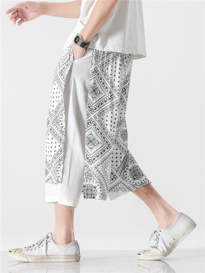 Patchwork Loose Printed Wide Leg Cropped Pants