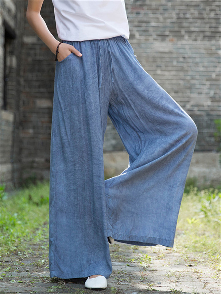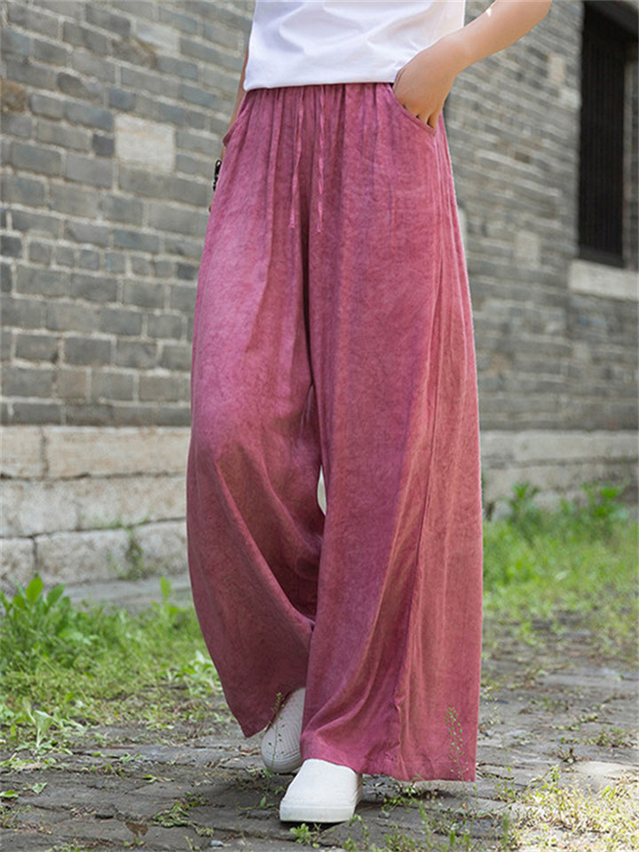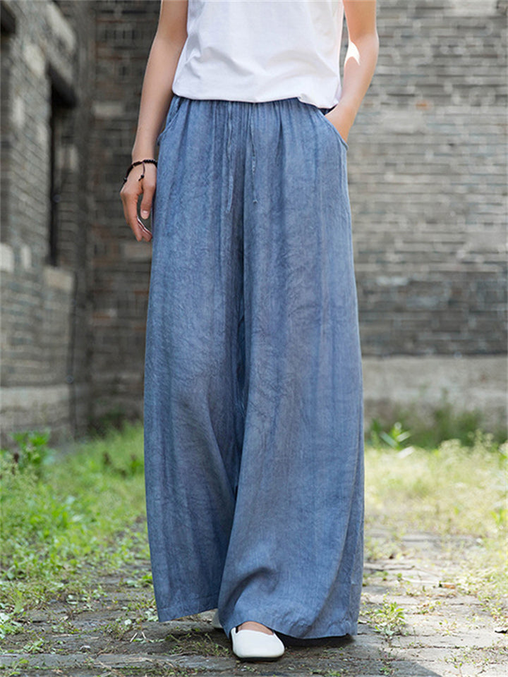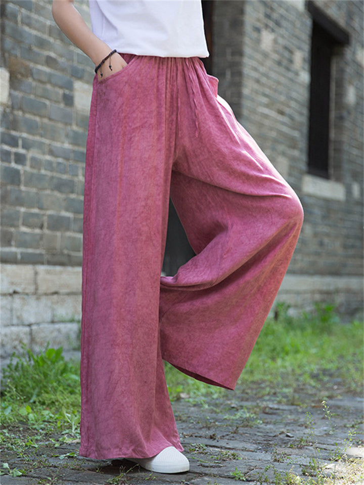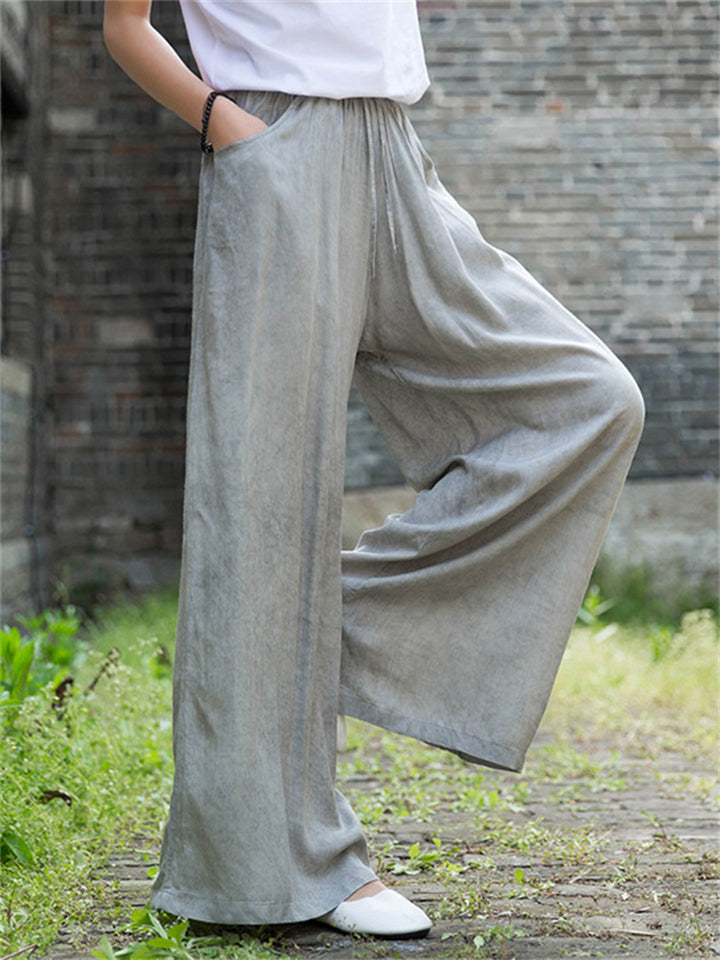 Women's Summer Cool Solid Color Elastic Waist Drawstring Pants