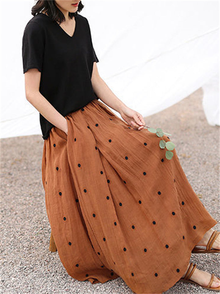 Women's Vintage Floral Printed Pleated Elastic Waist Big Hem Skirts