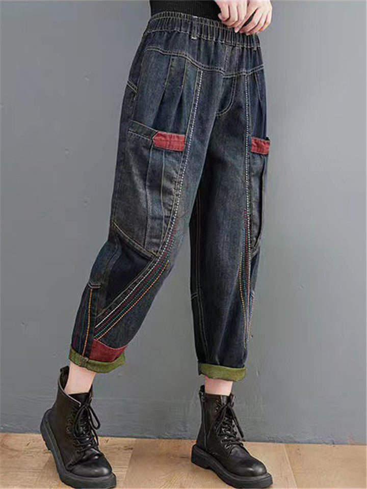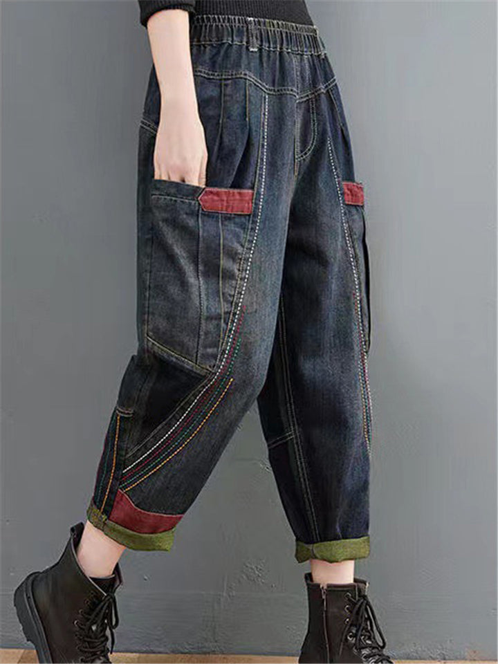 Ladies Ethnic Style Floral Embroidery Round Neck Shirts