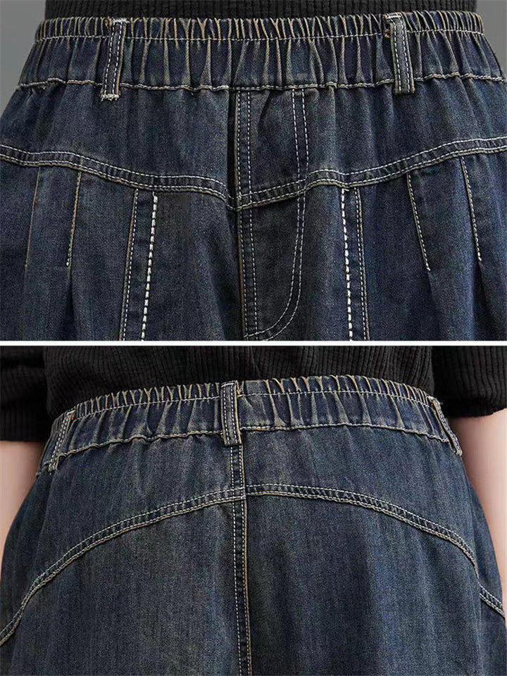 Women's Vintage Floral Printed Pleated Elastic Waist Big Hem Skirts