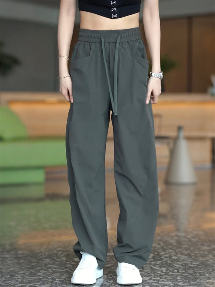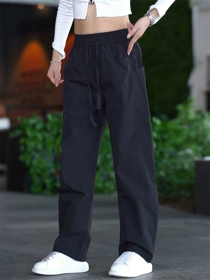 Summer Loose Fit Workwear Pants for Women with Drawstring and Pockets